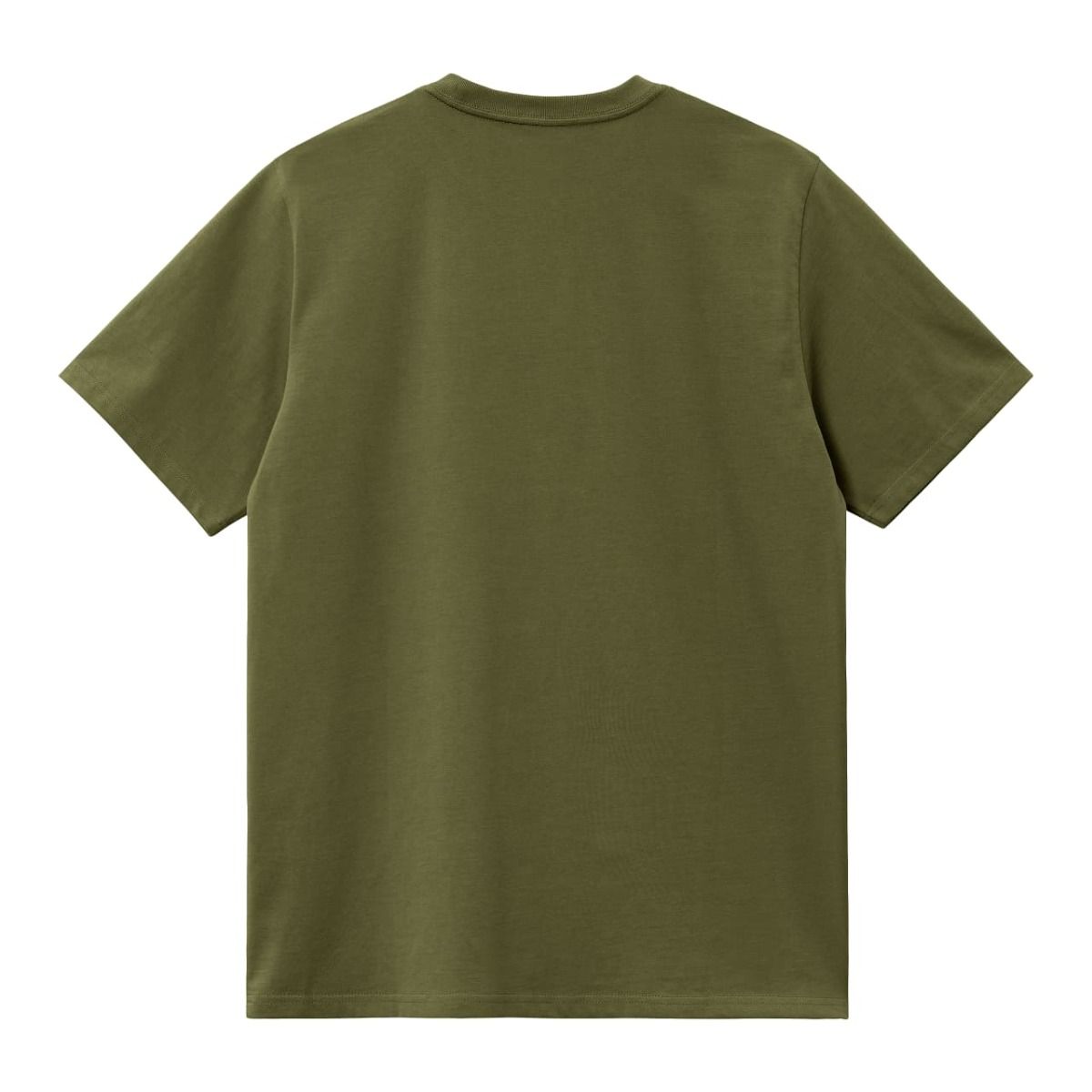 La camiseta de manga corta Script Verde-Rosa para hombre tiene el sello de garantía Carhartt Work In Progress en el cuello interior.