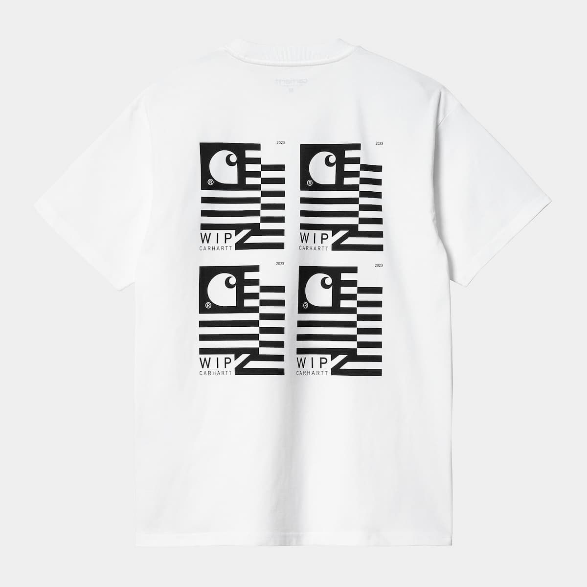 La camiseta orgánica de manga corta para hombre Stamp State blanca y negra tiene el sello de garantía Carhartt Work In Progress en el interior.