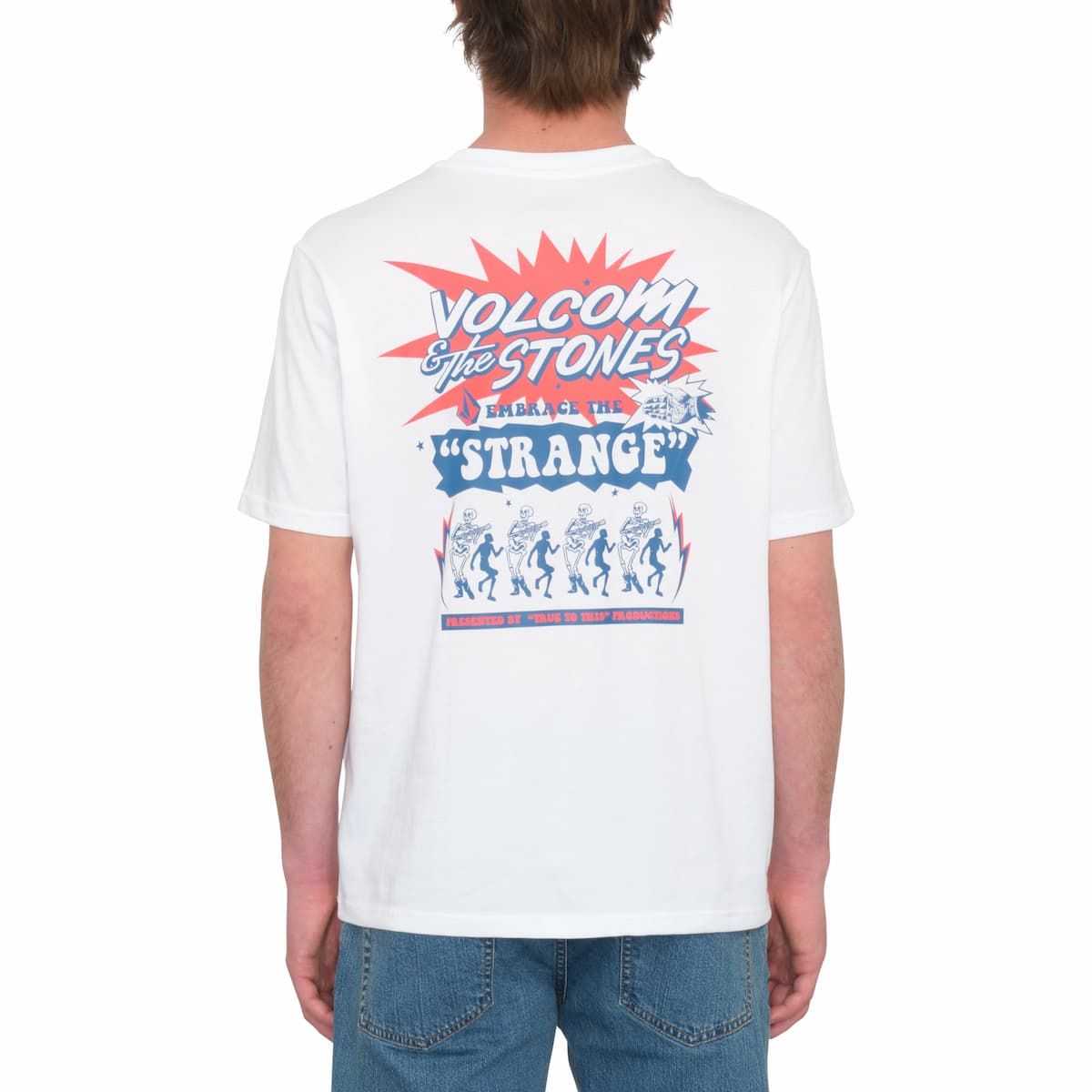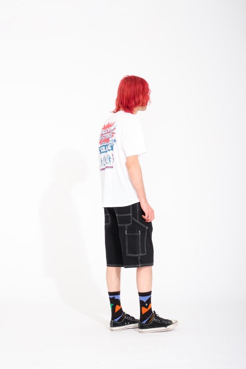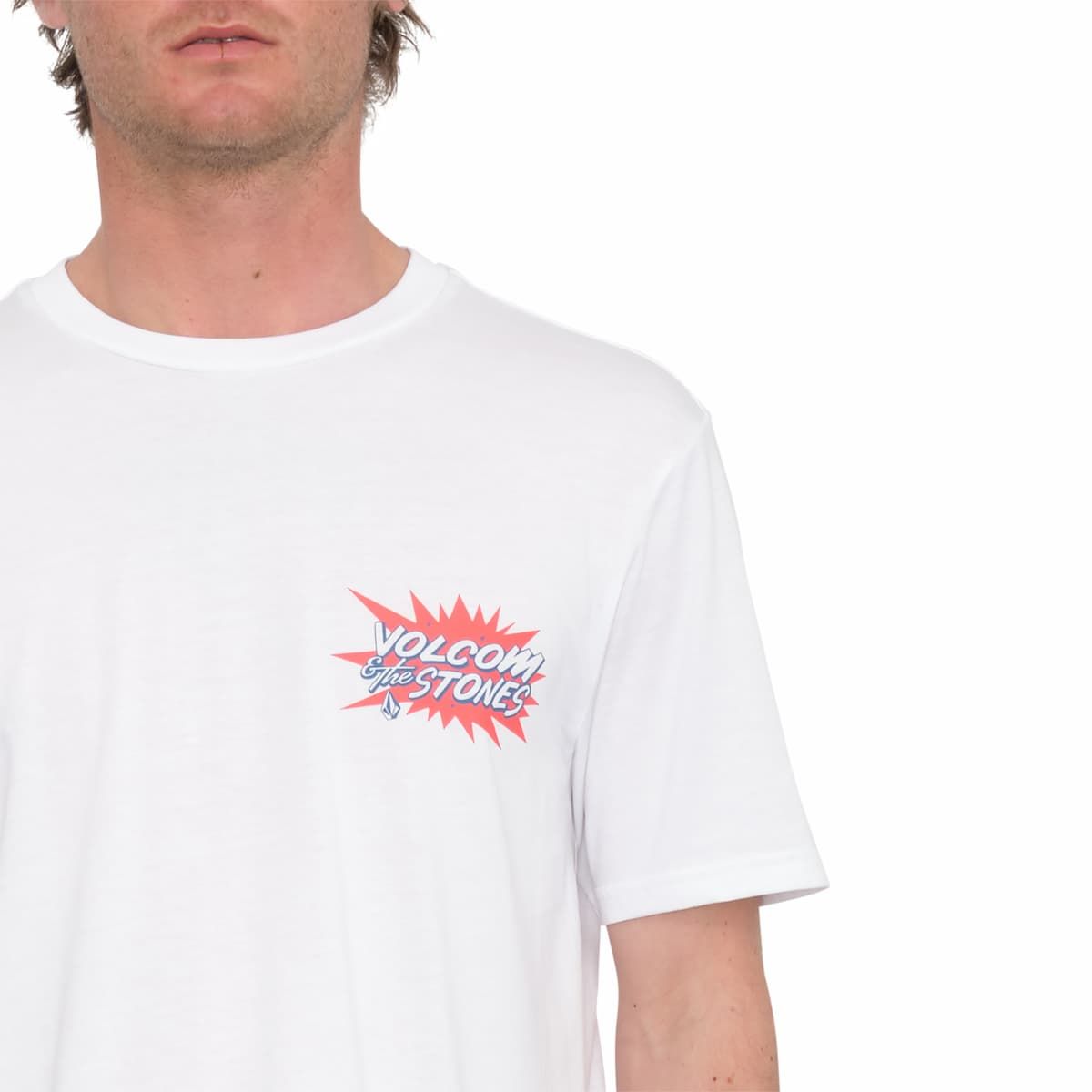 Esta camiseta orgánica básica viene con corte clásico, cuello redondo, manga corta, serigrafiado bajo la manga y un estampado gráfico Volcom & The Stones de inspiración rockera impreso en el lado izquierdo del pecho y en la espalda.