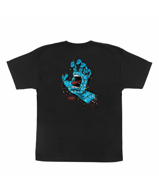 Camiseta juvenil Santa Cruz x Stranger Things Screaming Lights negra. Gráfico trasero que brilla en la oscuridad y tejido 100% algodón de alta calidad.