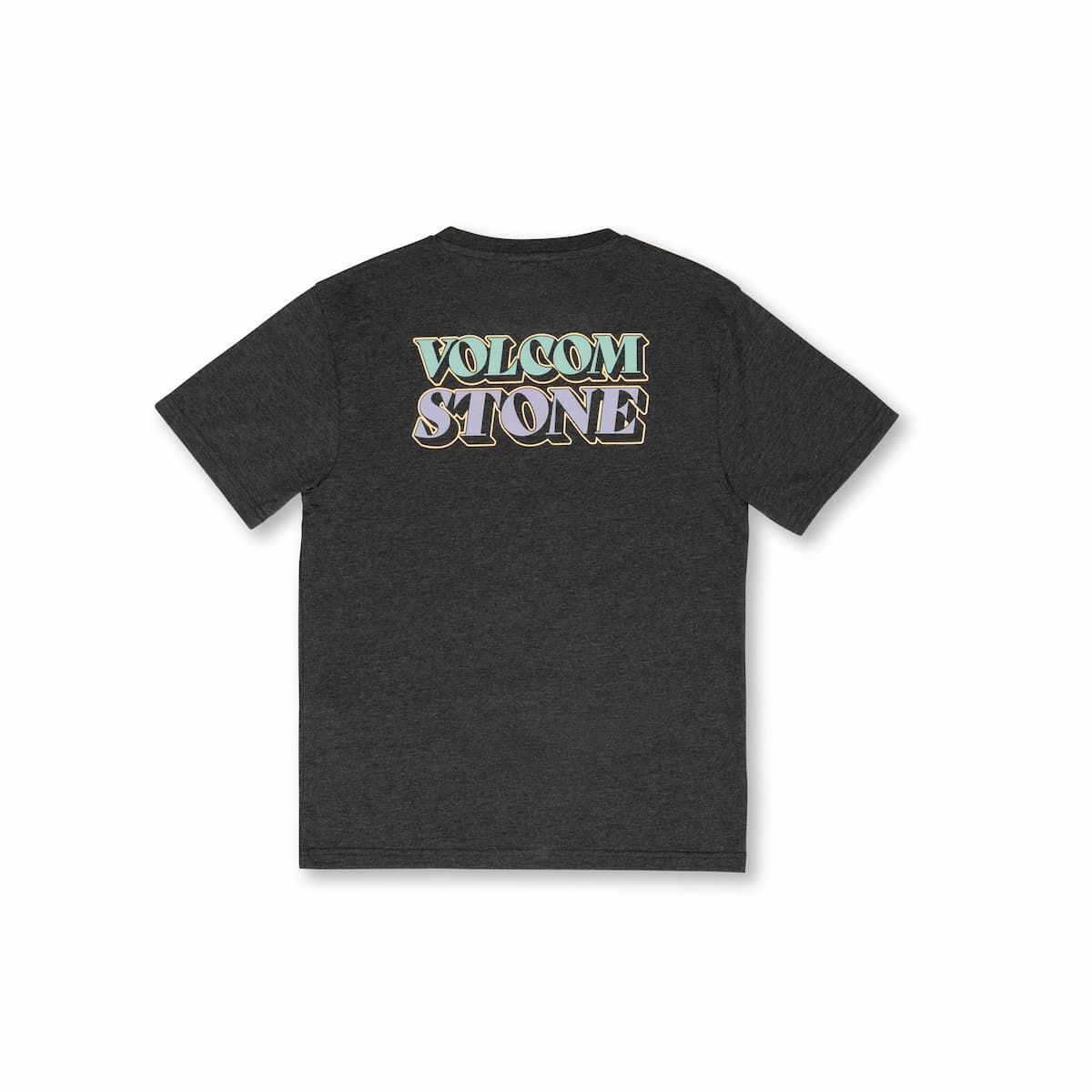 La camiseta de manga corta Stript Boy color Heather Black para niño tiene el sello de garantía Volcom termofijado en el cuello interior.