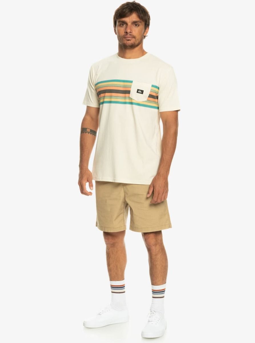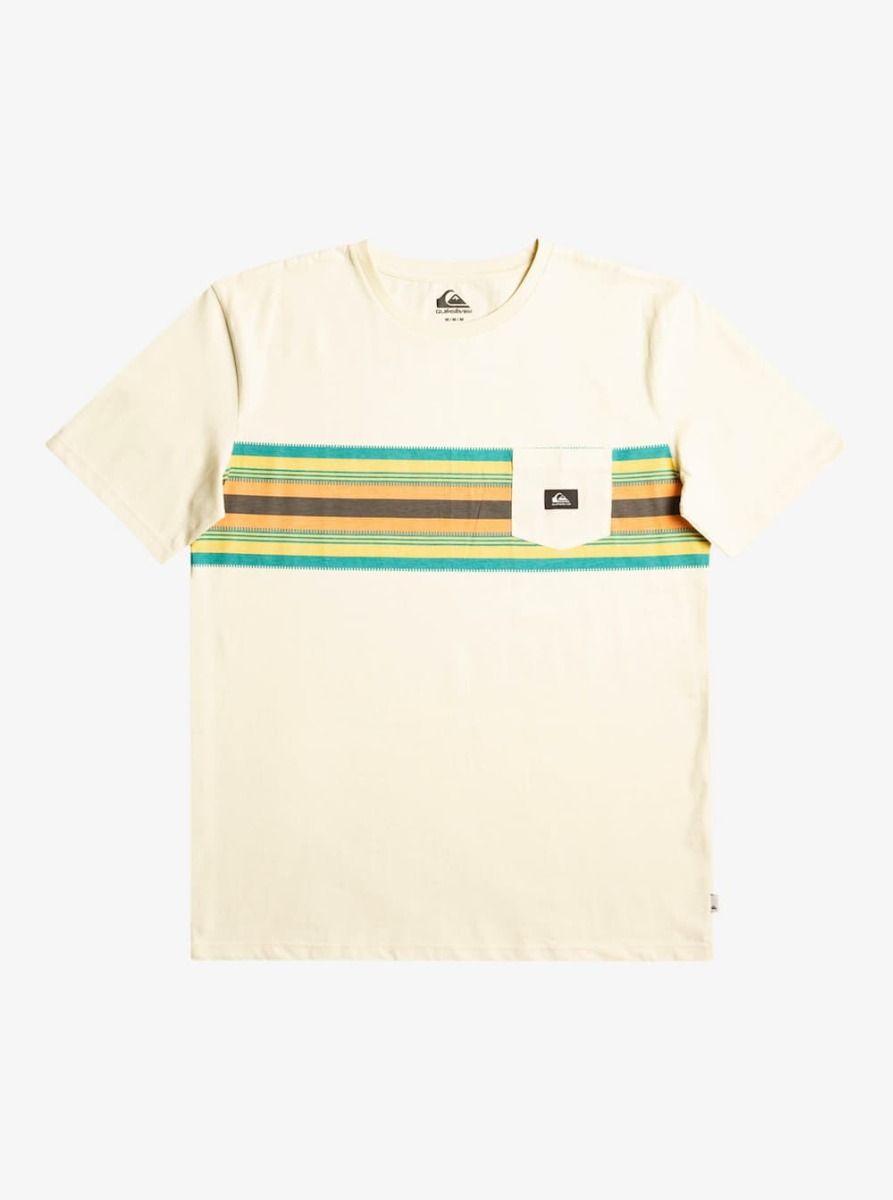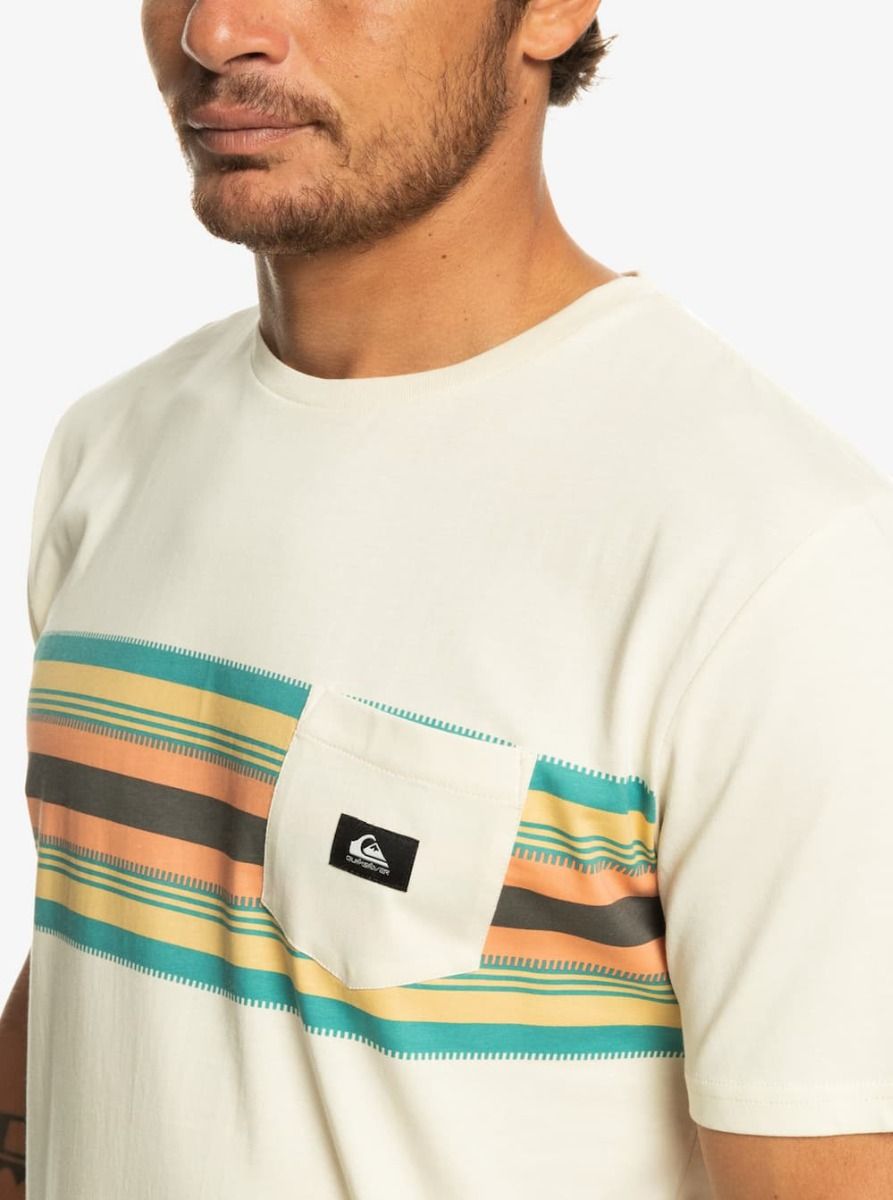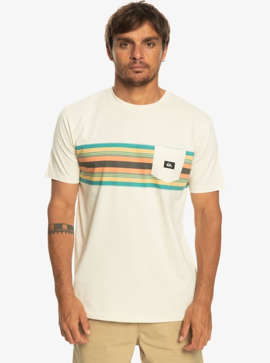Camiseta de manga corta con bolsillo Quiksilver Surfadelica Stripe en color blanco hueso para hombre