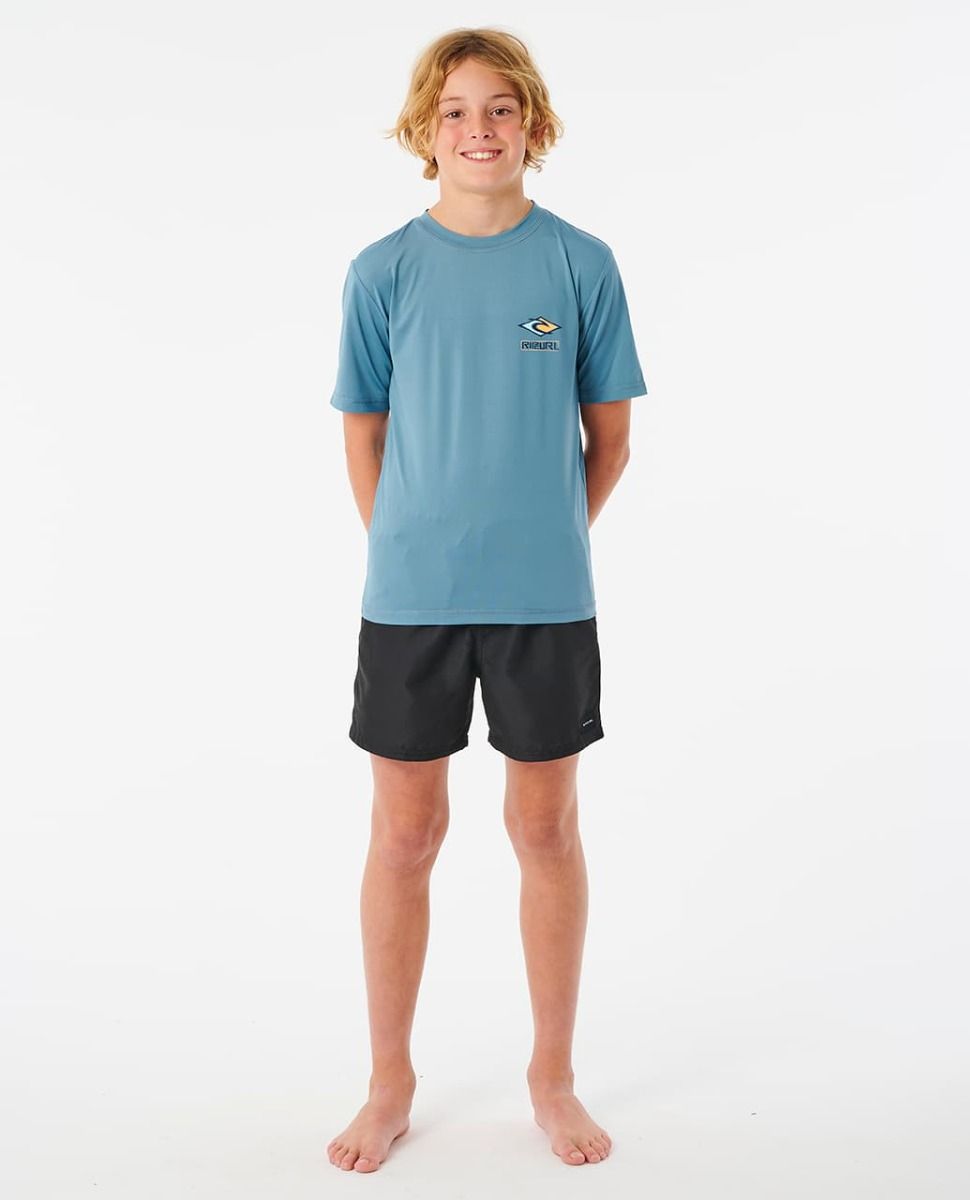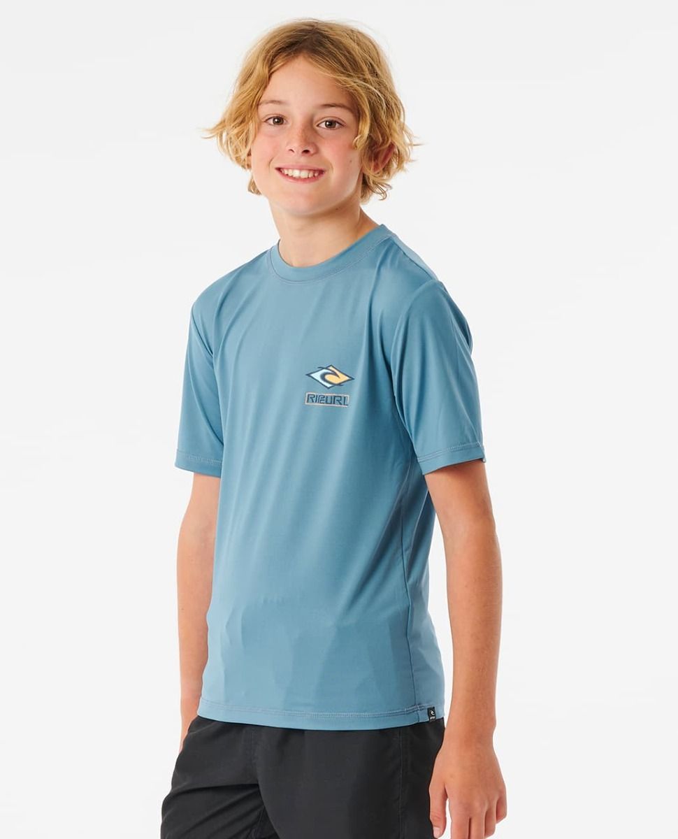 Esta licra de surf para niño cuenta con ajuste cómodo, manga corta, factor de protección solar UPF 50+ y el logo de Rip Curl serigrafiado en el lado izquierdo del pecho y en la espalda.