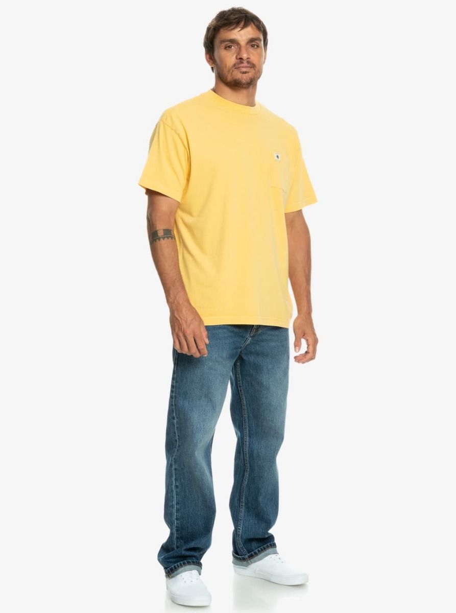 La camiseta para hombre The Natural Dye en amarillo (Wheat) de Quiksilver está confeccionada con 100% tejido ecológico de algodón orgánico (220g/m2) y teñida con mineral natural.