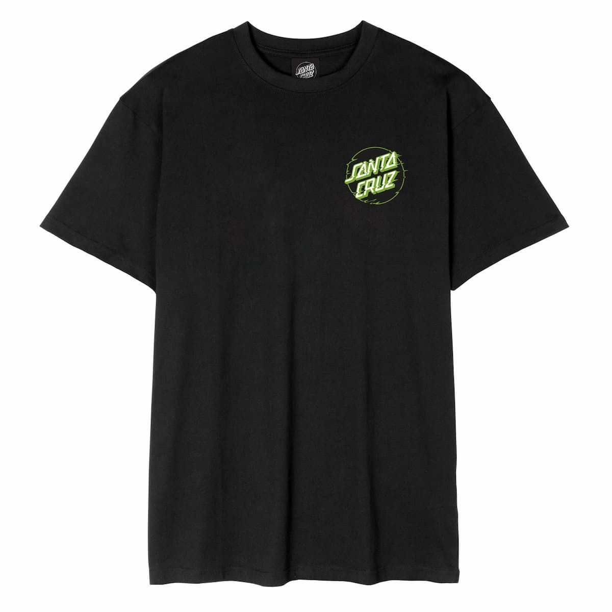 Esta camiseta skater en tono negro presenta corte clásico, manga corta y cuello redondo para adaptarse a cualquier estilo, serigrafiado Santa Cruz en el lado izquierdo del pecho y un gráfico de una calavera que brilla en la oscuridad impresa en la espalda.