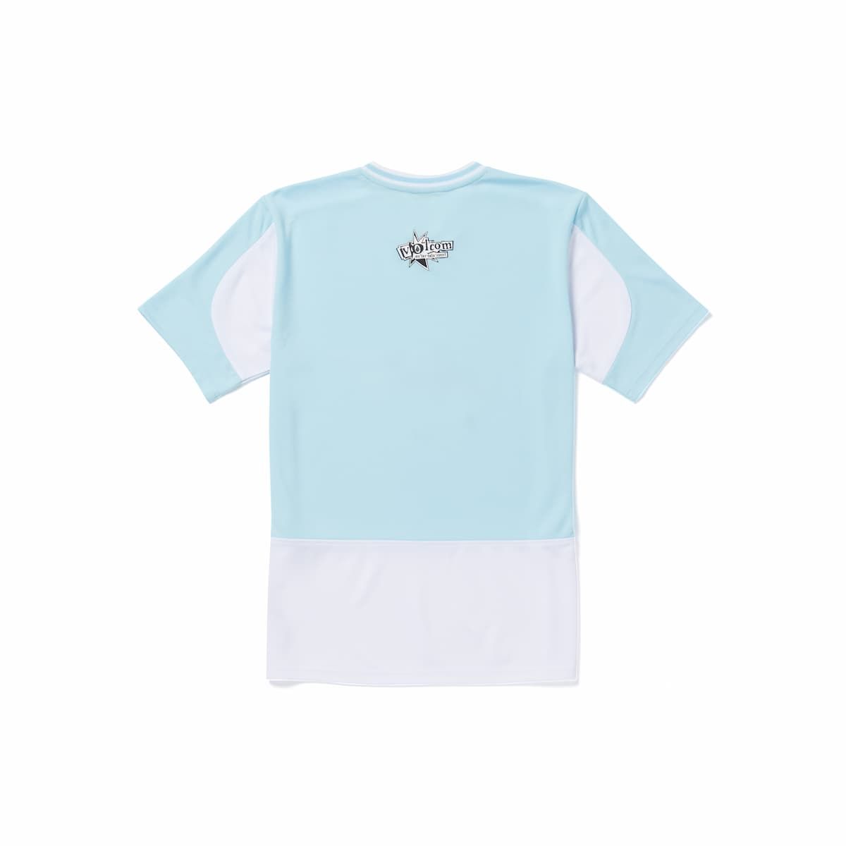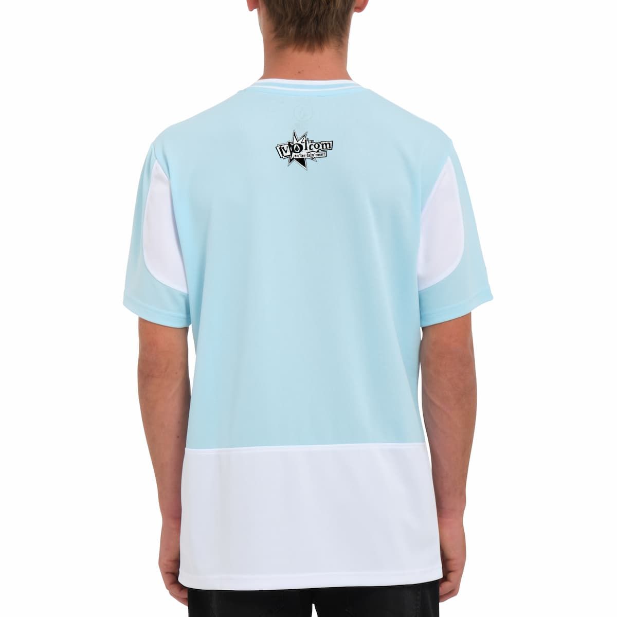 La camiseta de manga corta V Ent Noa Deane Azul Celeste para hombre tiene el sello de garantía Volcom en el cuello interior.