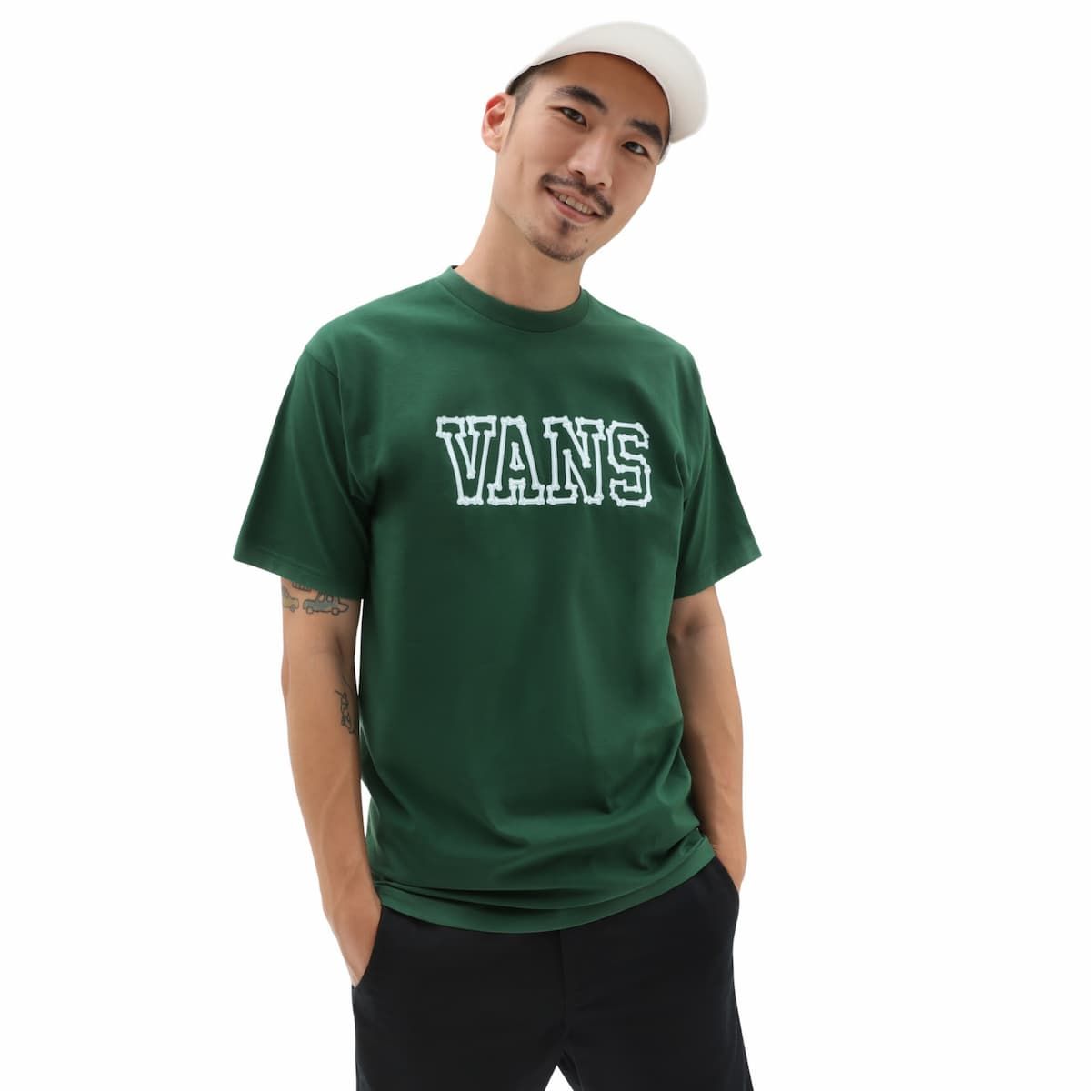 La camiseta de manga corta Bones verde para hombre tiene el sello de garantía Vans® en el cuello interior.