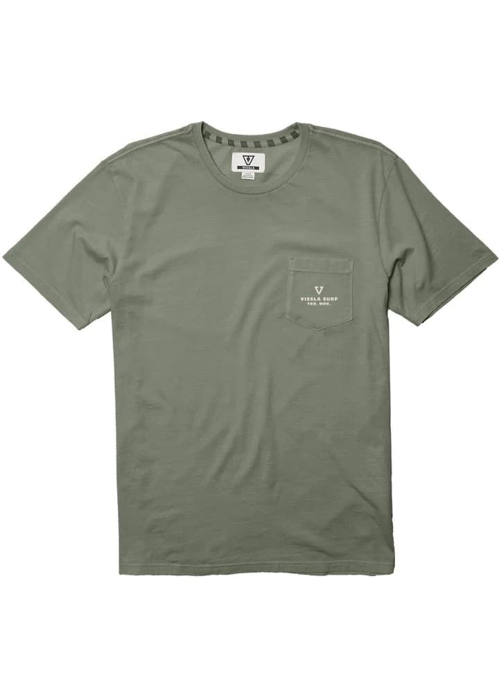 La camiseta de manga corta para hombre Cabezas SS PKT en verde (Army) de Vissla está confeccionada con 100% algodón y teñida en prenda con pigmentos.