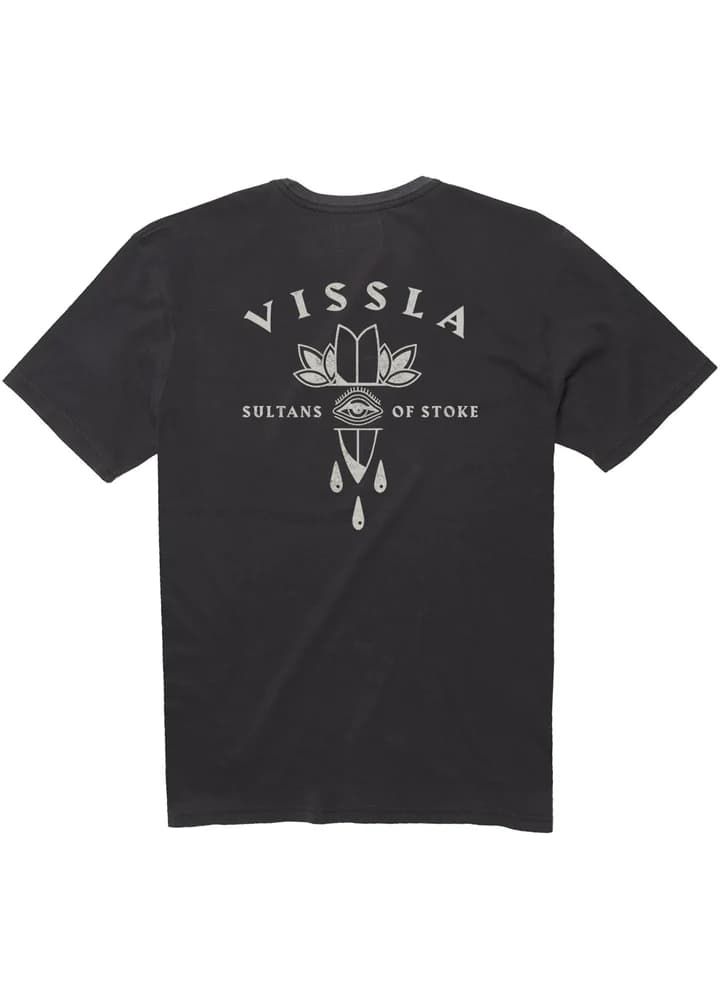 Esta camiseta conmemorativa de "Sultans of Stoke" cuenta con corte moderno, bolsillo en el pecho, cuello redondo, manga corta, cuello, mangas y dobladillo inferior en punto canalé, lavado suave en prenda y estampados con serigrafiado Vissla Sultans of Stoke en el bolsillo y en la espalda.