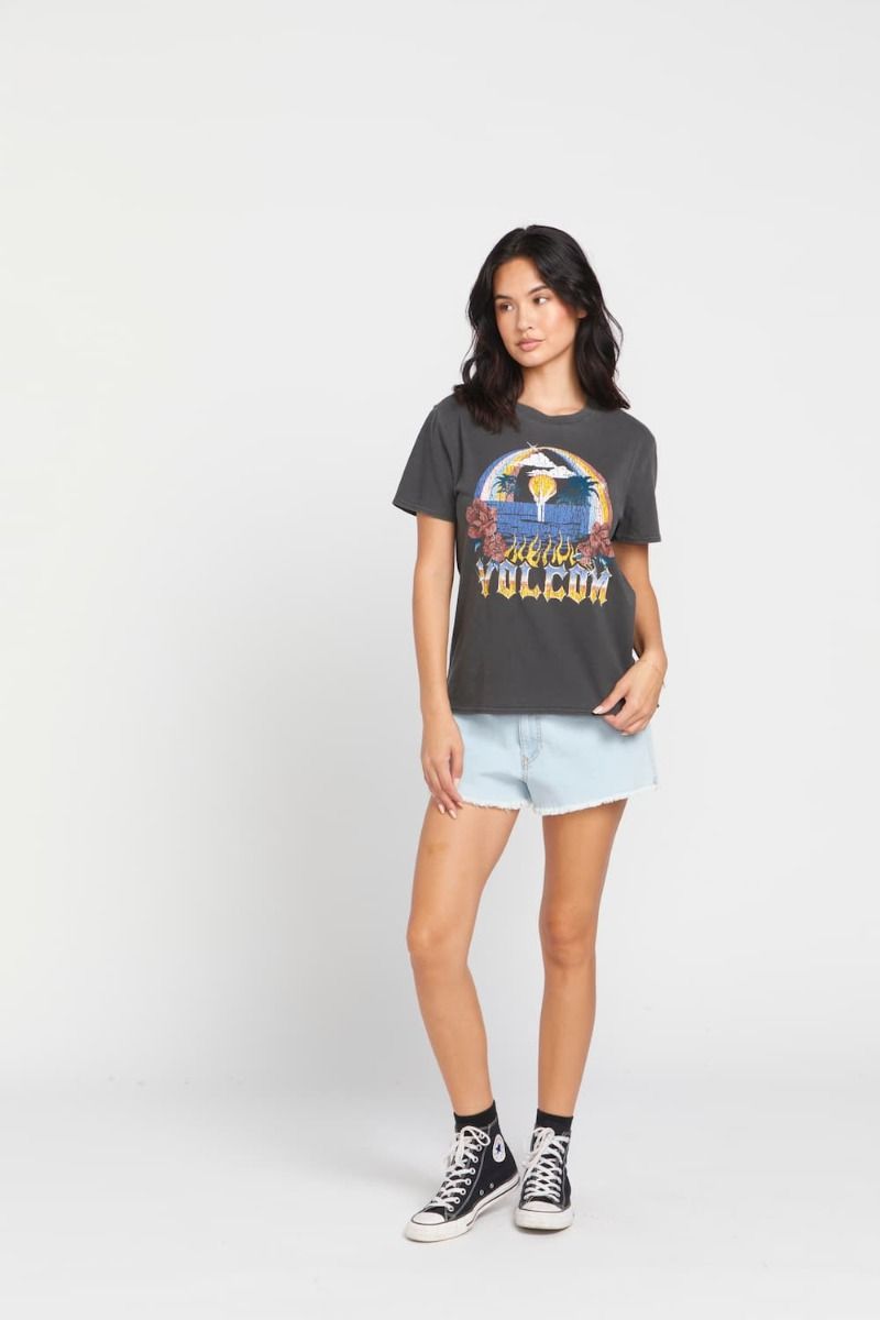 Camiseta de manga corta Volcom Lock It Up en color negro para mujer