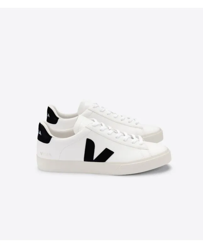 Zapatillas Veja Campo Chromefree blancas con detalles en color negro y suela de goma blanca Unisex | Extra White Black