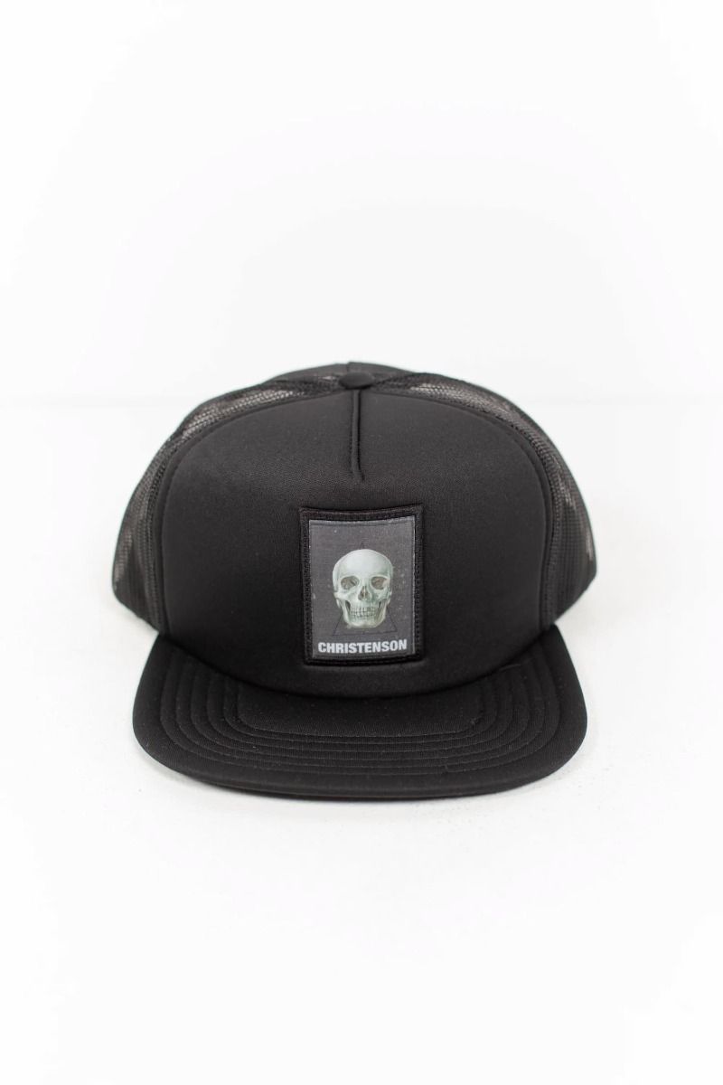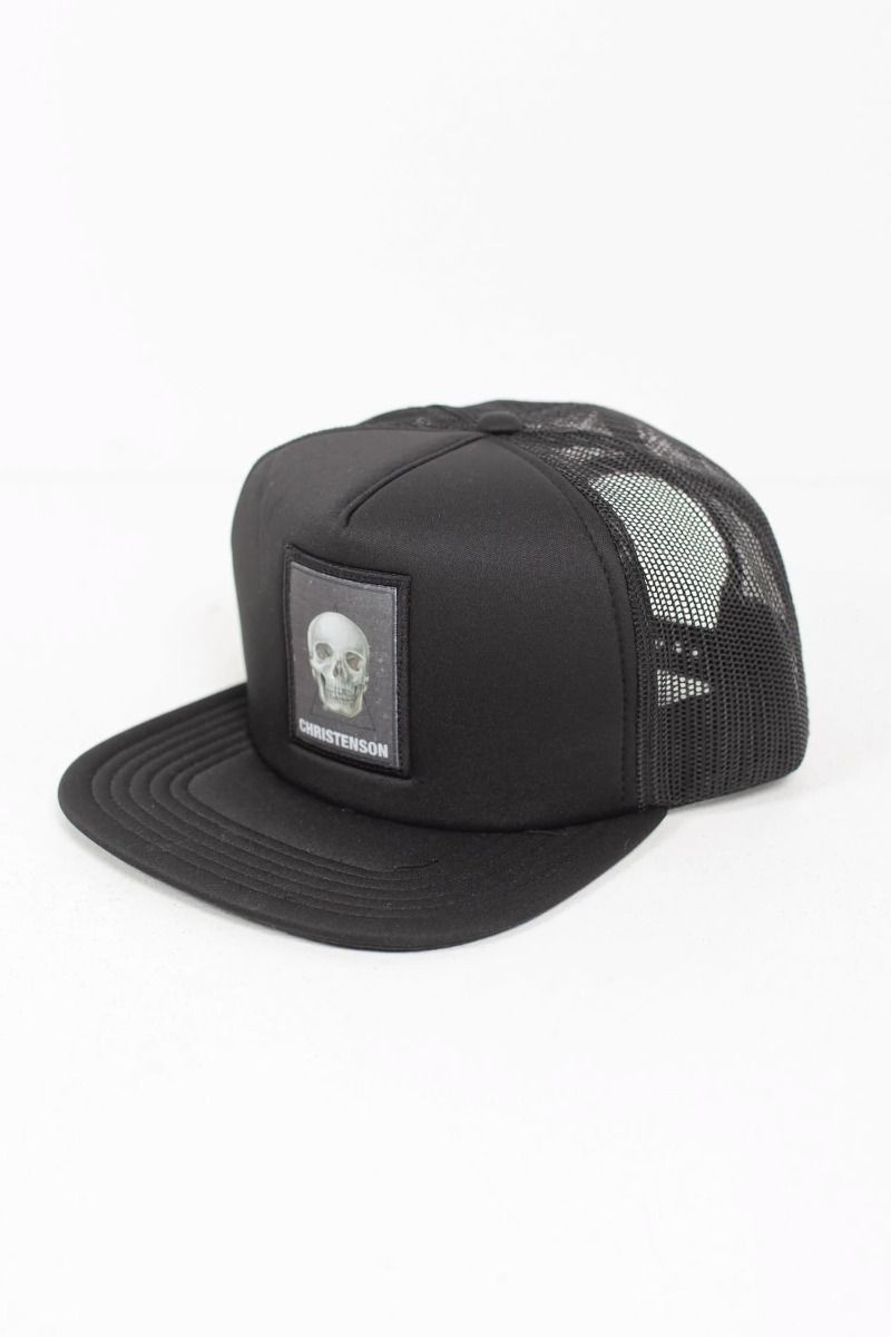 La gorra trucker Cigar Box Skull negra tiene el sello de garantía Christenson.