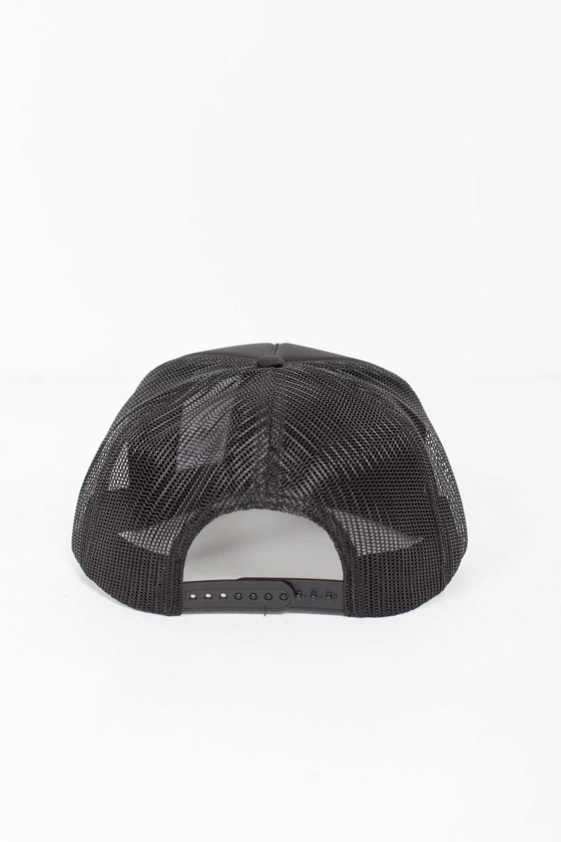 Esta gorra de diseño estructurado en 5 paneles cuenta con perfil medio, paneles de malla traseros, visera plana, cierre posterior a presión de plástico y un parche con el logo de la calavera de Christenson bordado en el frontal.