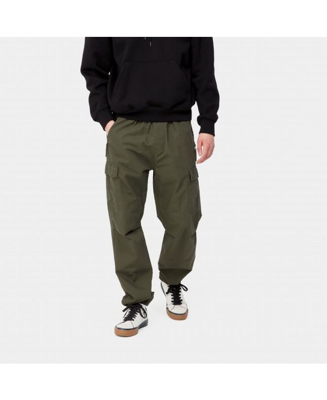 El pantalón deportivo para hombre Cargo Jogger en verde (Cypress) de Carhartt WIP está confeccionado con tejido duradero 100% de algodón "Columbia" ripstop.