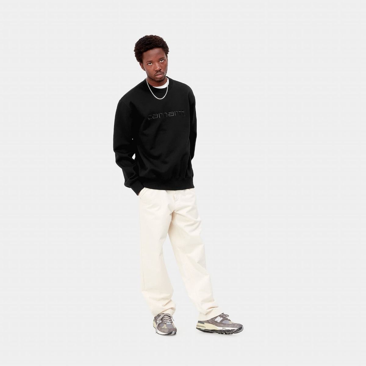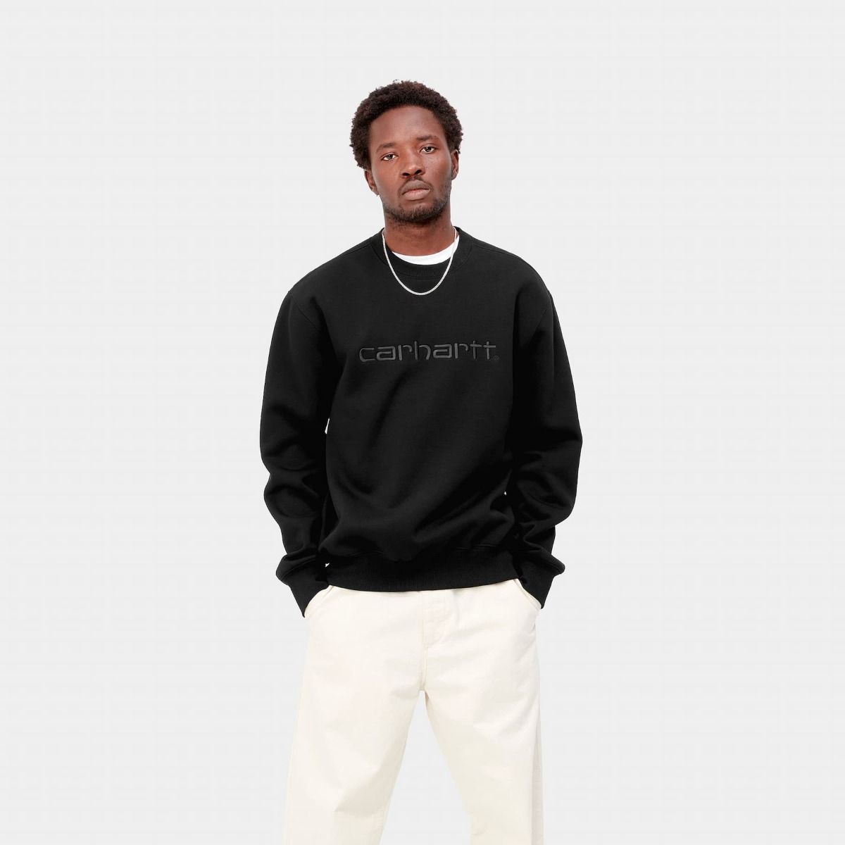 La Carhartt Sweatshirt para hombre de Carhartt WIP está disponible en color negro con el logo bordado en negro (Black/Black).