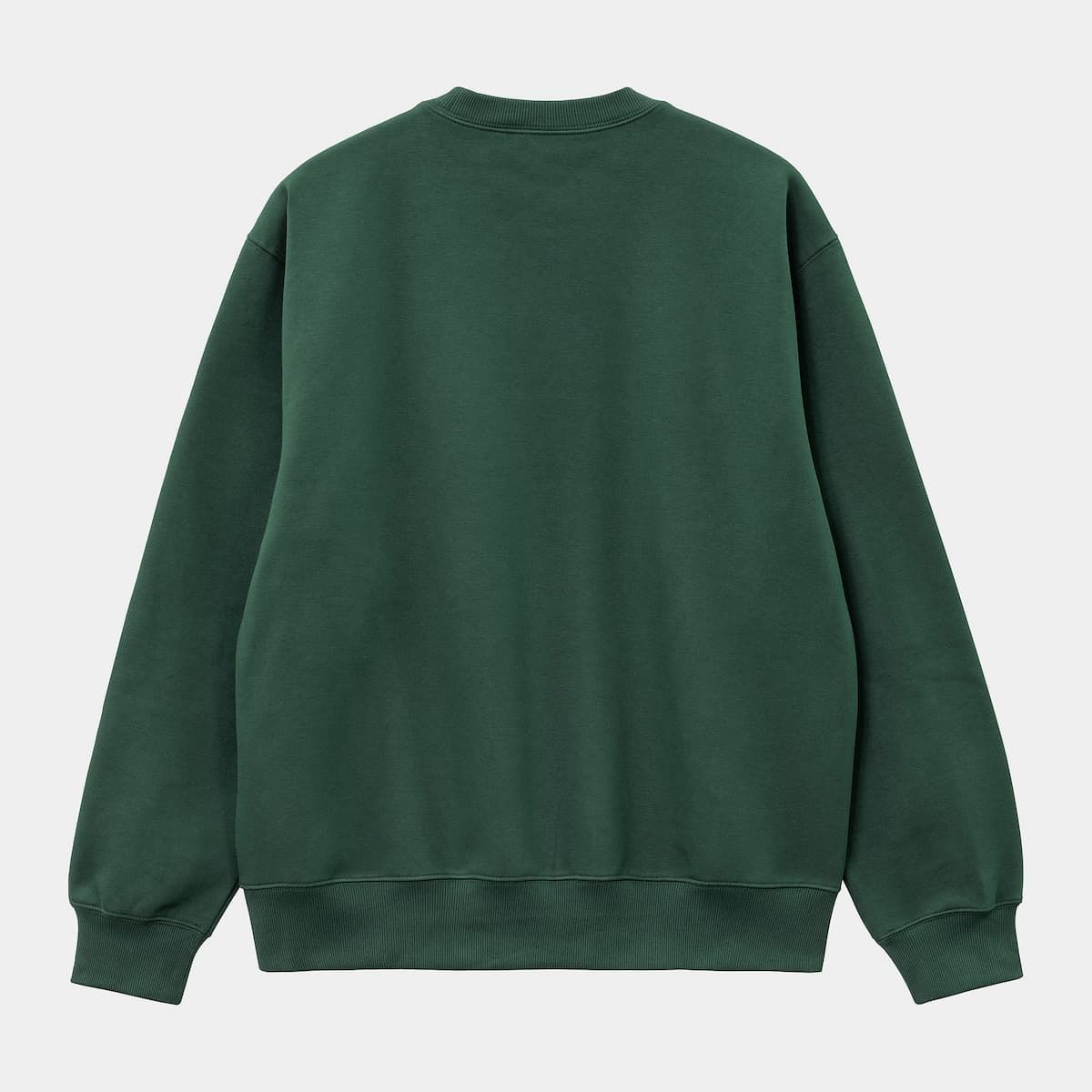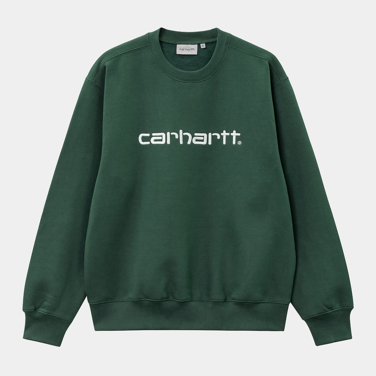 La sudadera sin capucha para hombre Carhartt Sweatshirt verde con el logo bordado en blanco (Treehouse-White) de Carhartt WIP está confeccionada con tejido de punto en mezcla de 58% algodón y 42% poliéster (440g/sqm).