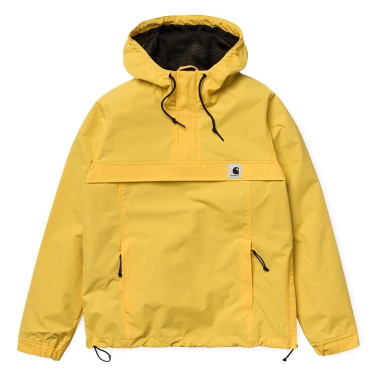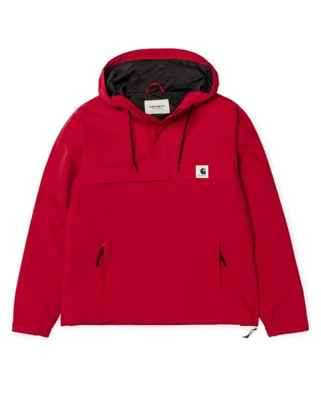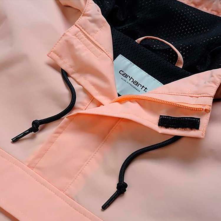 La chaqueta ligera Carhartt WIP Womens Nimbus Pullover Summer está disponible en color amarillo (Primula), azul celeste (Soft Aloe), rojo (Cardinal) y rosa (Peach).