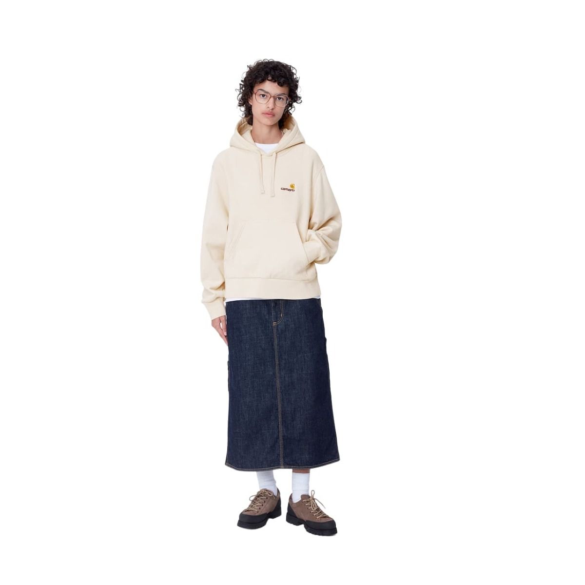 La sudadera con capucha W' Hooded American Script Sweat Moonbeam para mujer de Carhartt Work In Progress no puede faltar en tu colección de ropa Streetwear.