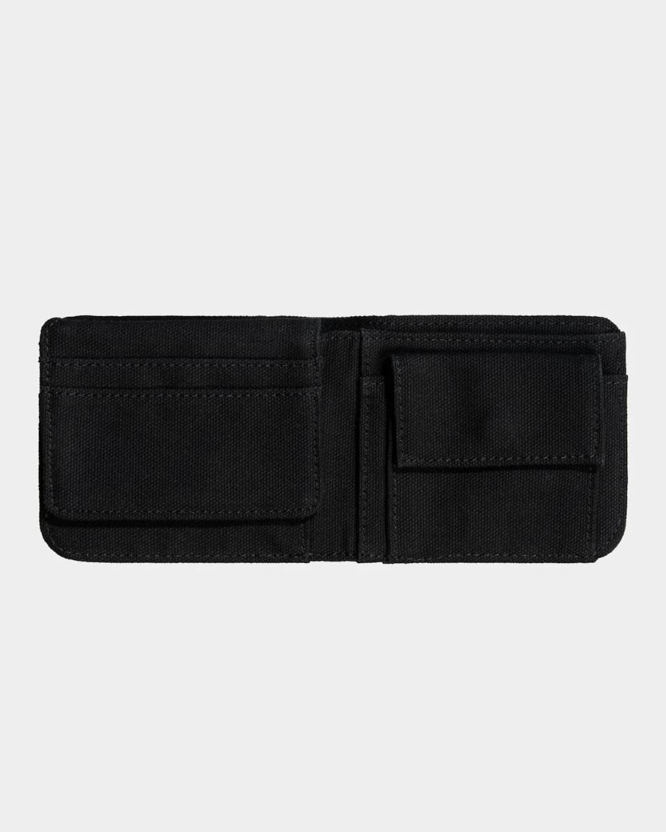 La cartera Carston Fold Wallet en negro (Black) para hombre de Carhartt WIP está confeccionada con lona Dearborn de 100% algodón que repele el agua.