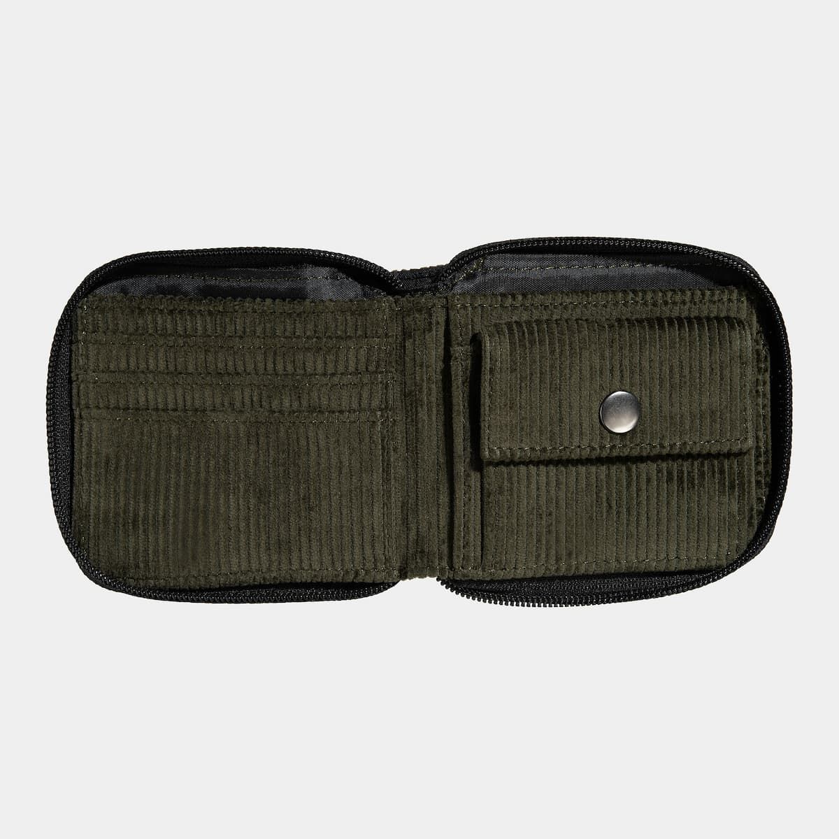 La cartera Flint Zip Wallet en tono verde militar (Plant) de Carhartt WIP está confeccionada con pana de 100% algodón de 8 wales (310g/sqm).