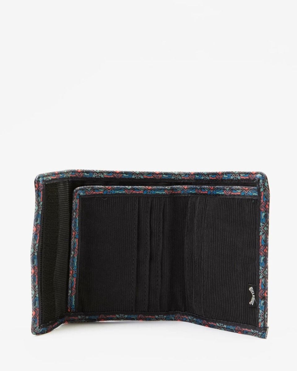 Esta billetera de triple pliegue, perteneciente a la colección Sons of Fun de Billabong, cuenta con cierre autoadherente de velcro, compartimento para billetes, bolsillo exterior monedero con cremallera, 6 ranuras interiores para tarjetas y una etiqueta de la colección tejida en el frente.