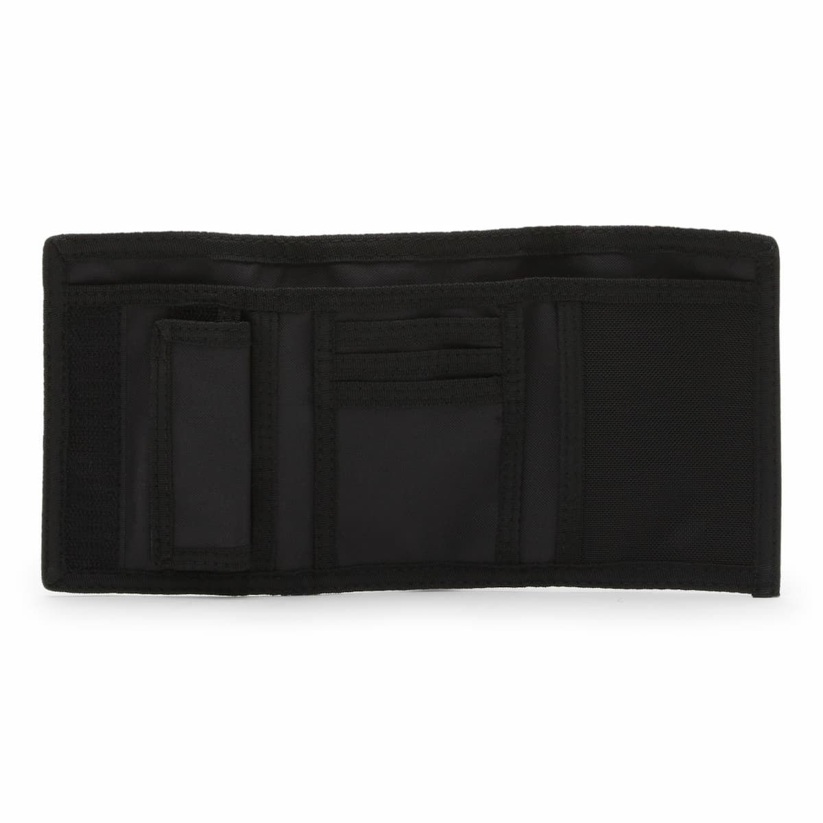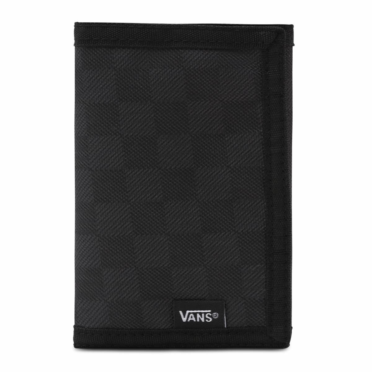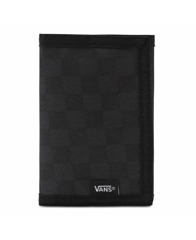 Esta cartera con diseño de tres paneles y cierre de velcro viene con bolsillo para monedas, ranuras para tarjetas, estampado checkerboard y una etiqueta Vans tejida en la zona frontal.