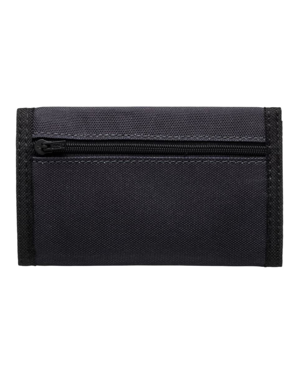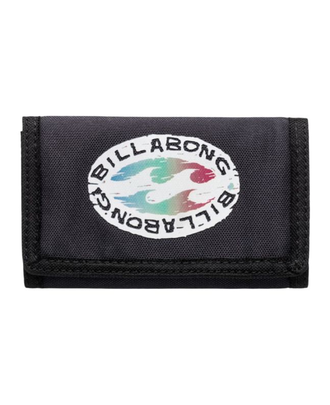 Esta práctica y ligera billetera en tono azul oscuro está confeccionada con tejido ecológico y resistente de 100% poliéster *reciclado. Su diseño de triple pliegue incluye un cierre autoadherente de velcro, un compartimento con cremallera para billetes, un bolsillo exterior con cierre de cremallera para monedas y seis ranuras para tarjetas, ofreciendo espacio y seguridad para tus pertenencias. En la parte delantera, luce el logo de la ola de Billabong con un efecto gastado.
