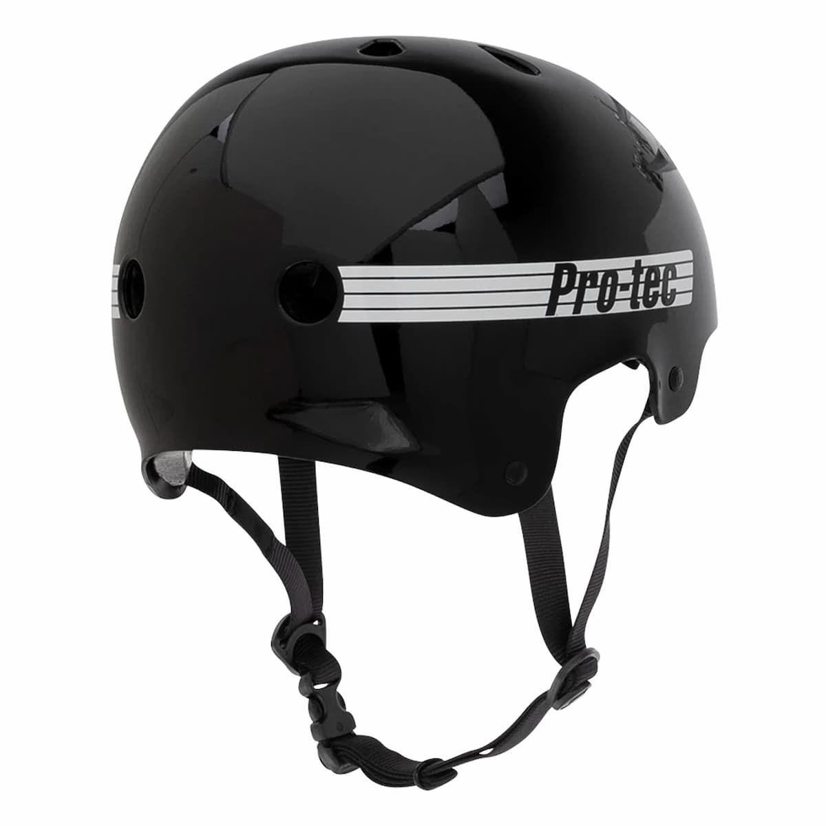 Casco Pro-Tec Old School Gloss Black con carcasa ABS y espuma EPS. Confort premium y ventilación ideal para skate o BMX.