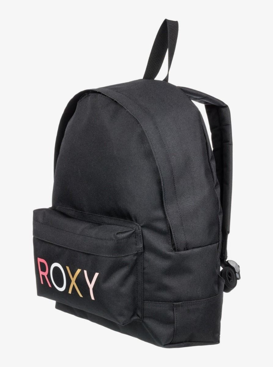 La Roxy Sugar Baby Solid 16L en negro tiene una serigrafía ROXY en el frente.