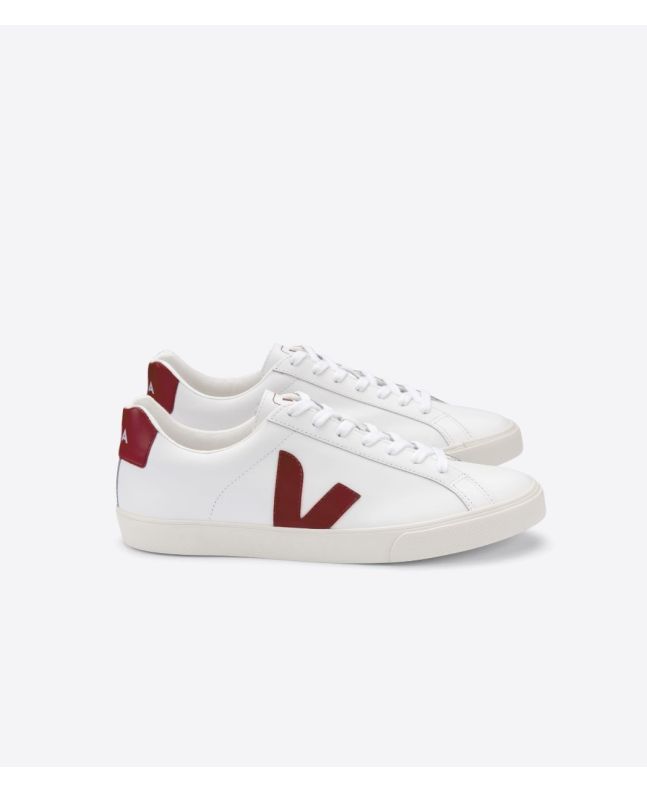 Zapatillas Veja Esplar Leather en color blanco con detalles en granate y suela de goma Unisex | Leather White Marsala