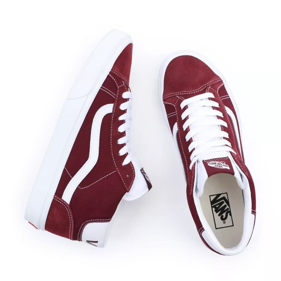 Las zapas de media caña Mid Skool 37 Unisex están disponibles en color granate con la banda lateral sidestripe en blanco (Port Royale/True White).