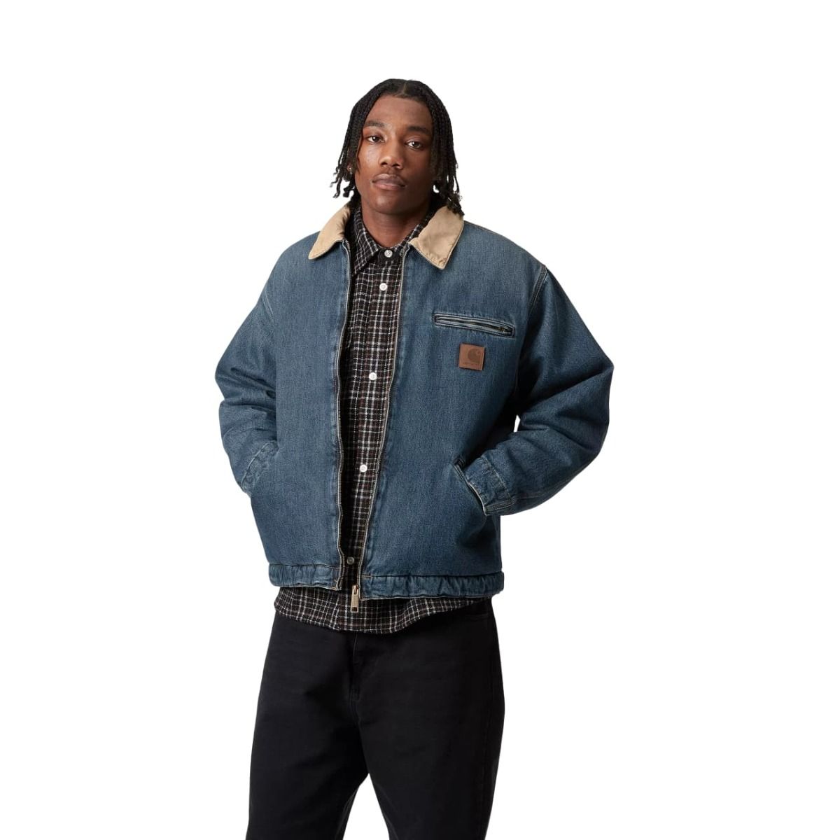 La Cazadora Carhartt WIP OG Detroit Jacket Blue-Dusty H Brown para hombre te proporciona calidez con un look de inspiración vintage.