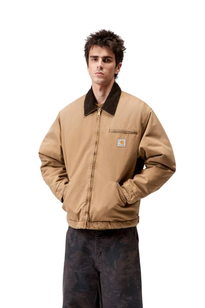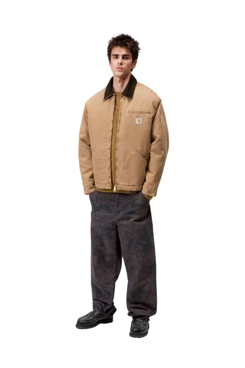 Chaqueta Carhartt WIP OG Detroit Jacket marrón, confeccionada en lona Dearborn Canvas 100% orgánica, con forro acolchado, cuello de pana y corte holgado. Cálida, resistente y funcional.