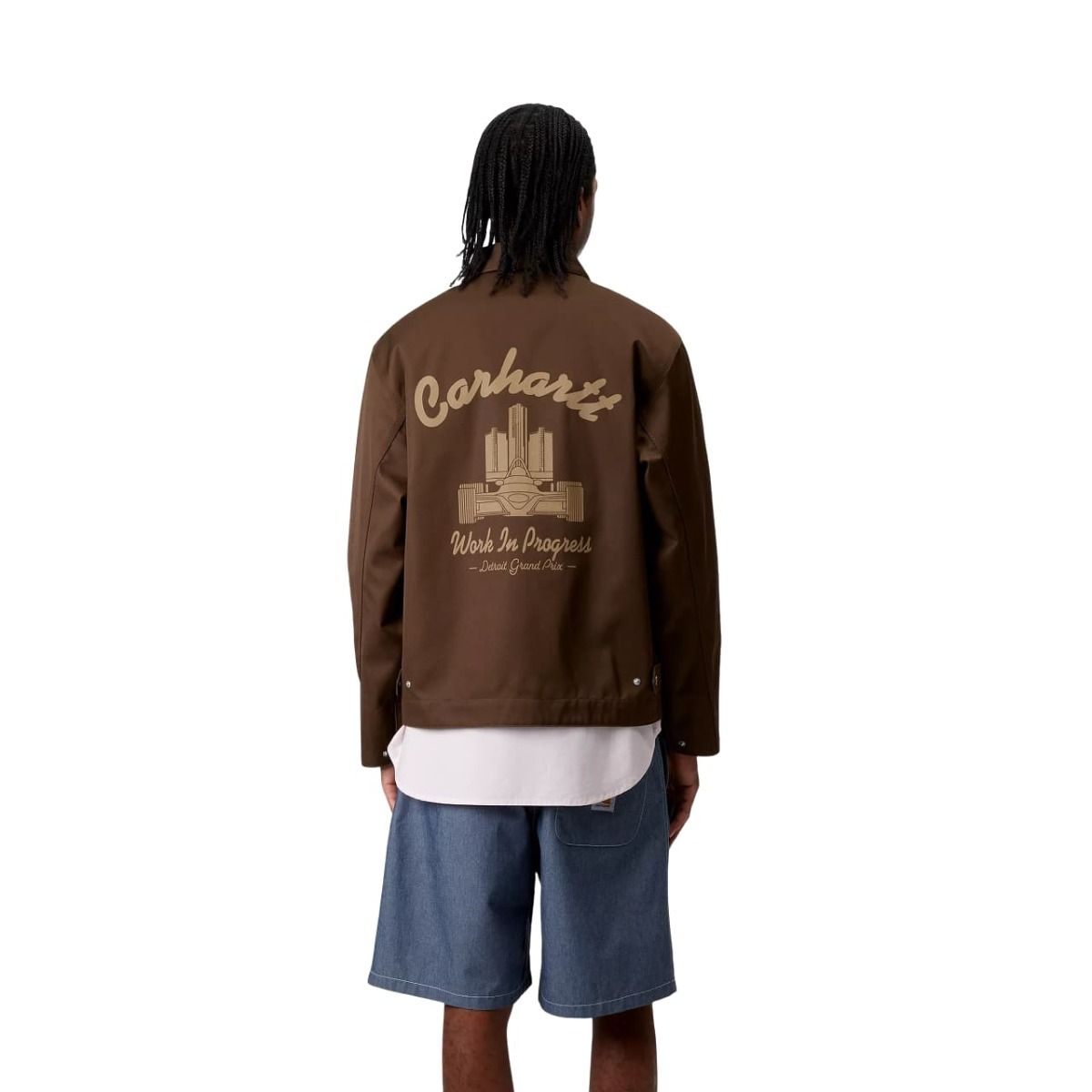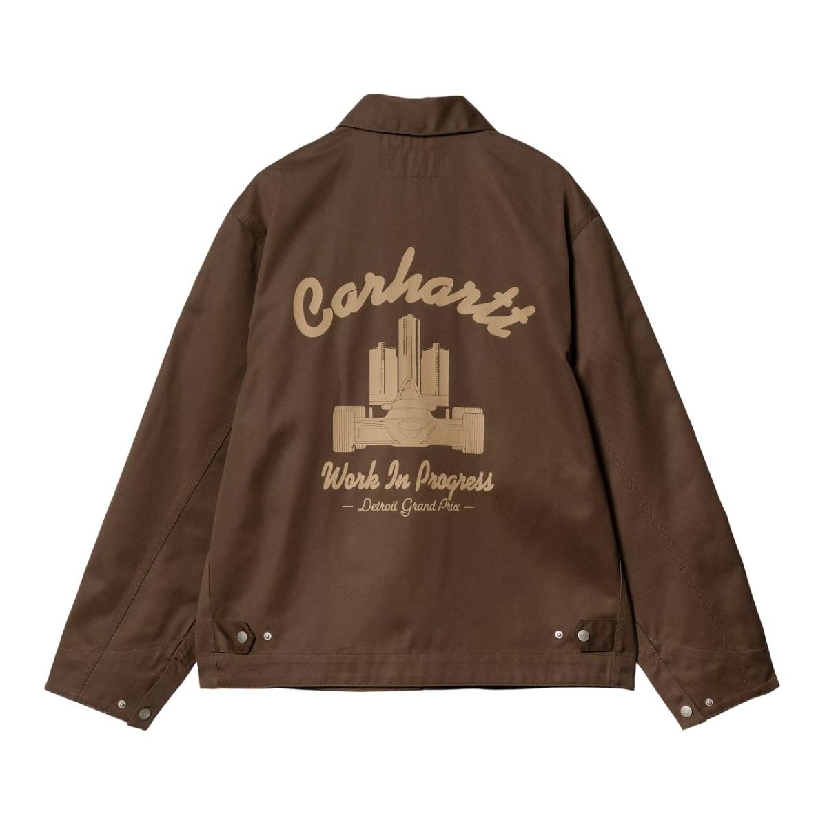 ✔ Diseño inspirado en las carreras: Bordado delantero con el texto "Carhartt Work In Progress - Detroit Grand Prix" en tono marrón cacahuete (Peanut).