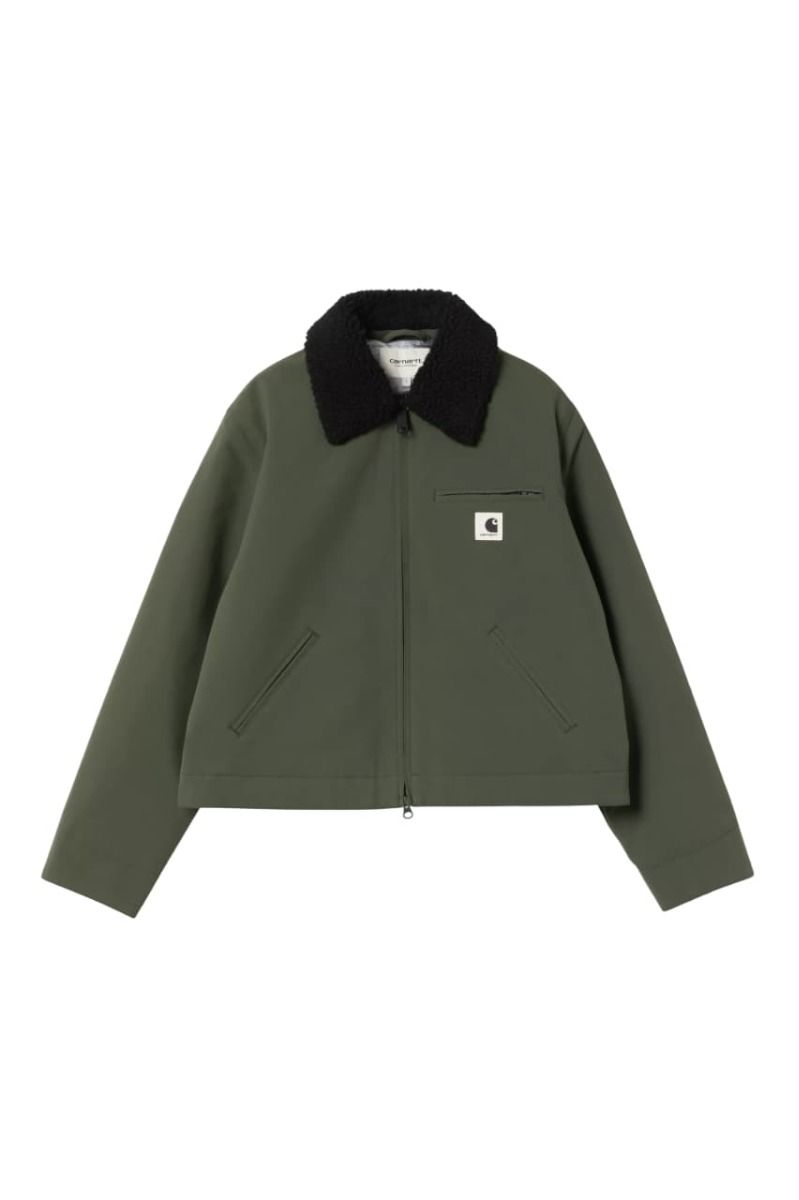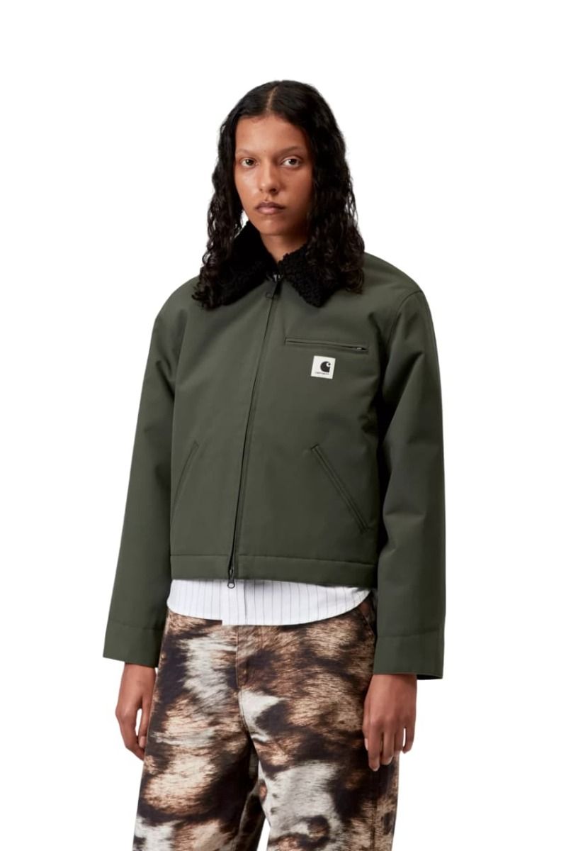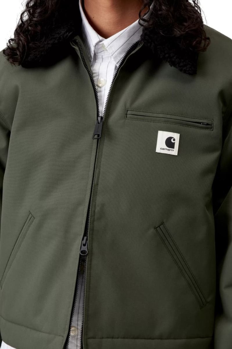 Cazadora Carhartt WIP W' Newkirk Jacket en color verde opuntia con estampado interior de perro para mujer