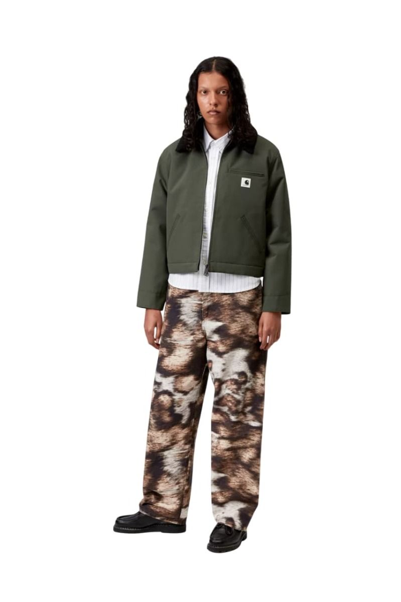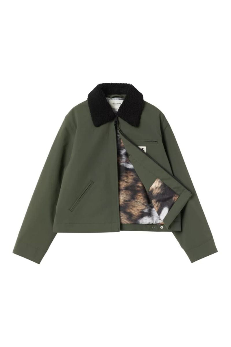 "La cazadora para mujer W' Newkirk Jacket Opuntia-Wild Dog Print fusiona el ADN workwear de Carhartt WIP con un toque inesperado gracias al forro animal print. Nos encanta la estructura del tejido, el cuello cálido de borreguillo y la versatilidad que ofrece su corte holgado. Una prenda que no solo abriga, también transmite identidad urbana desde el primer vistazo."