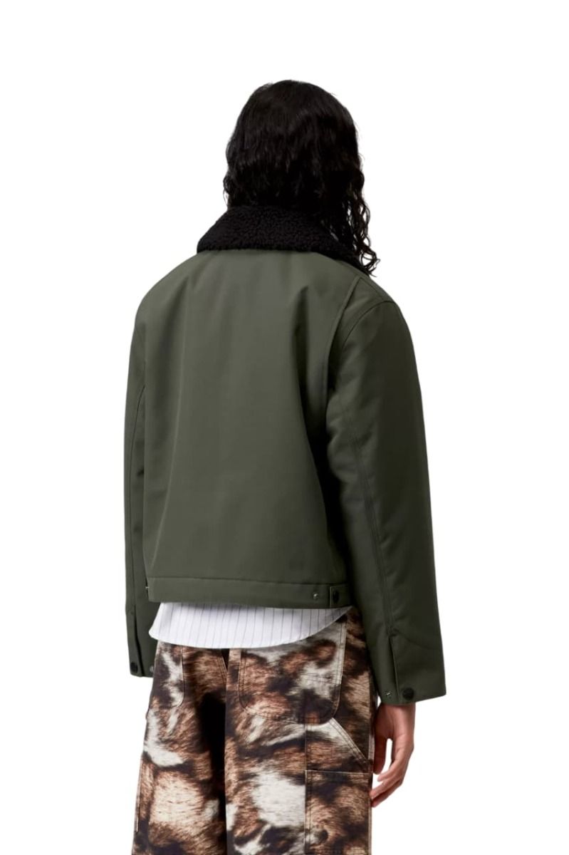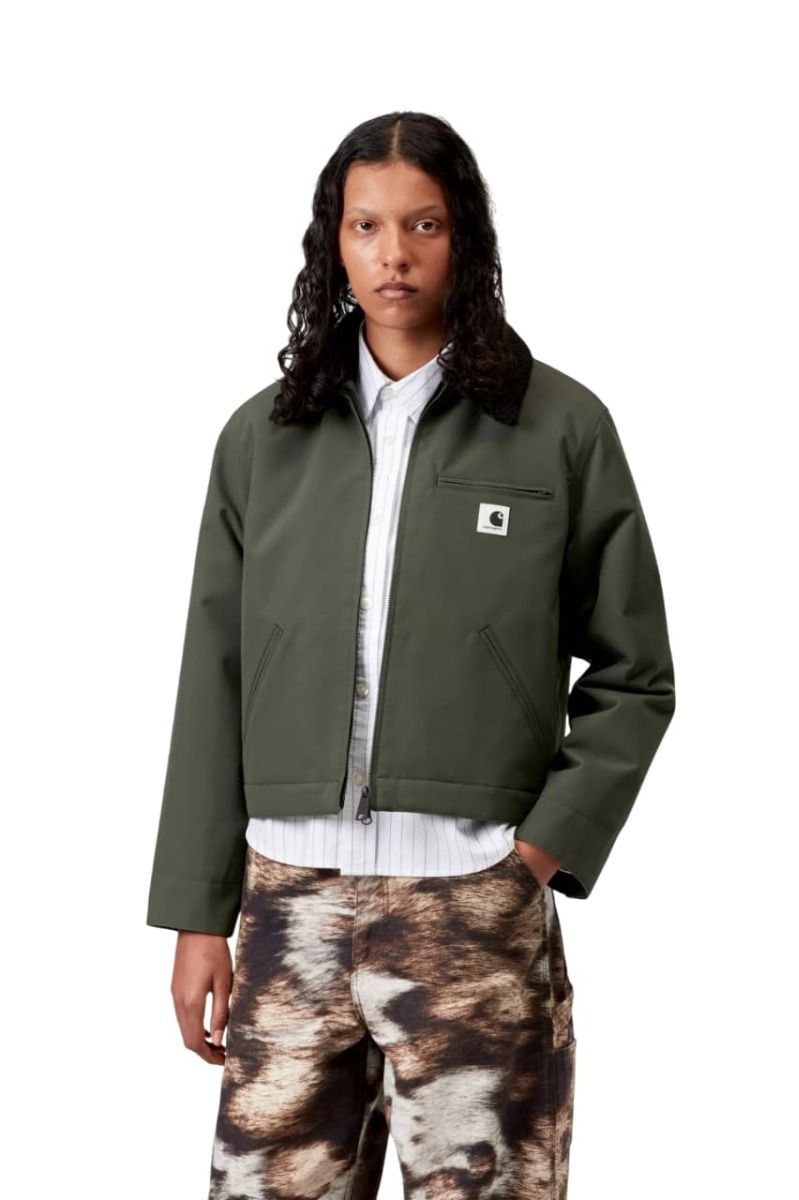 La Carhartt WIP W' Newkirk Jacket es una cazadora pensada para quienes buscan funcionalidad y carácter en una sola prenda. Este modelo para mujer mezcla la estética utilitaria clásica de la marca con acabados contemporáneos, creando una prenda robusta y única. El exterior en tono verde Opuntia se combina con un forro interior de tafetán reciclado estampado con diseño de perro, aportando un toque inesperado y atrevido.