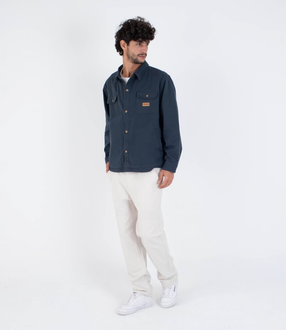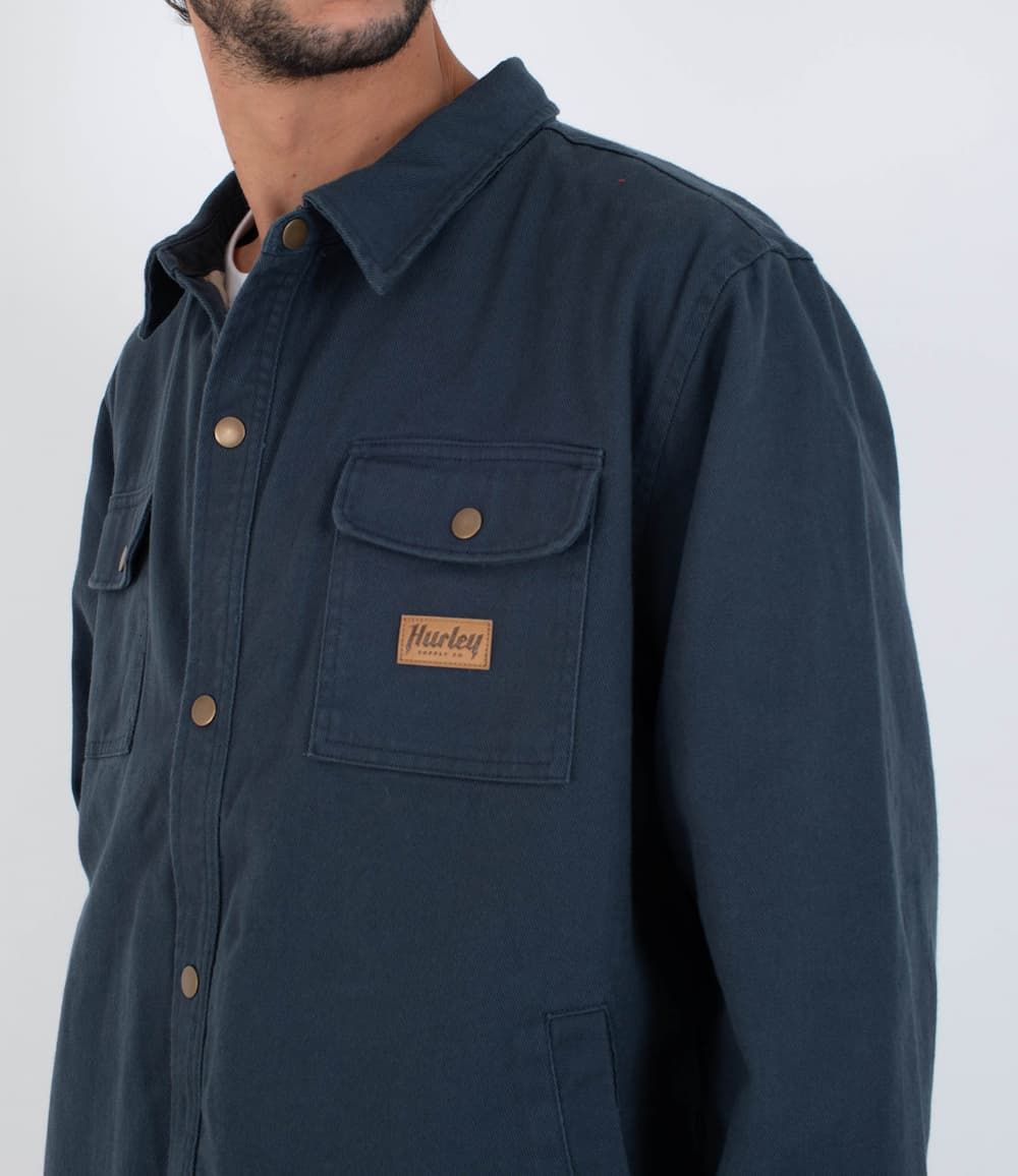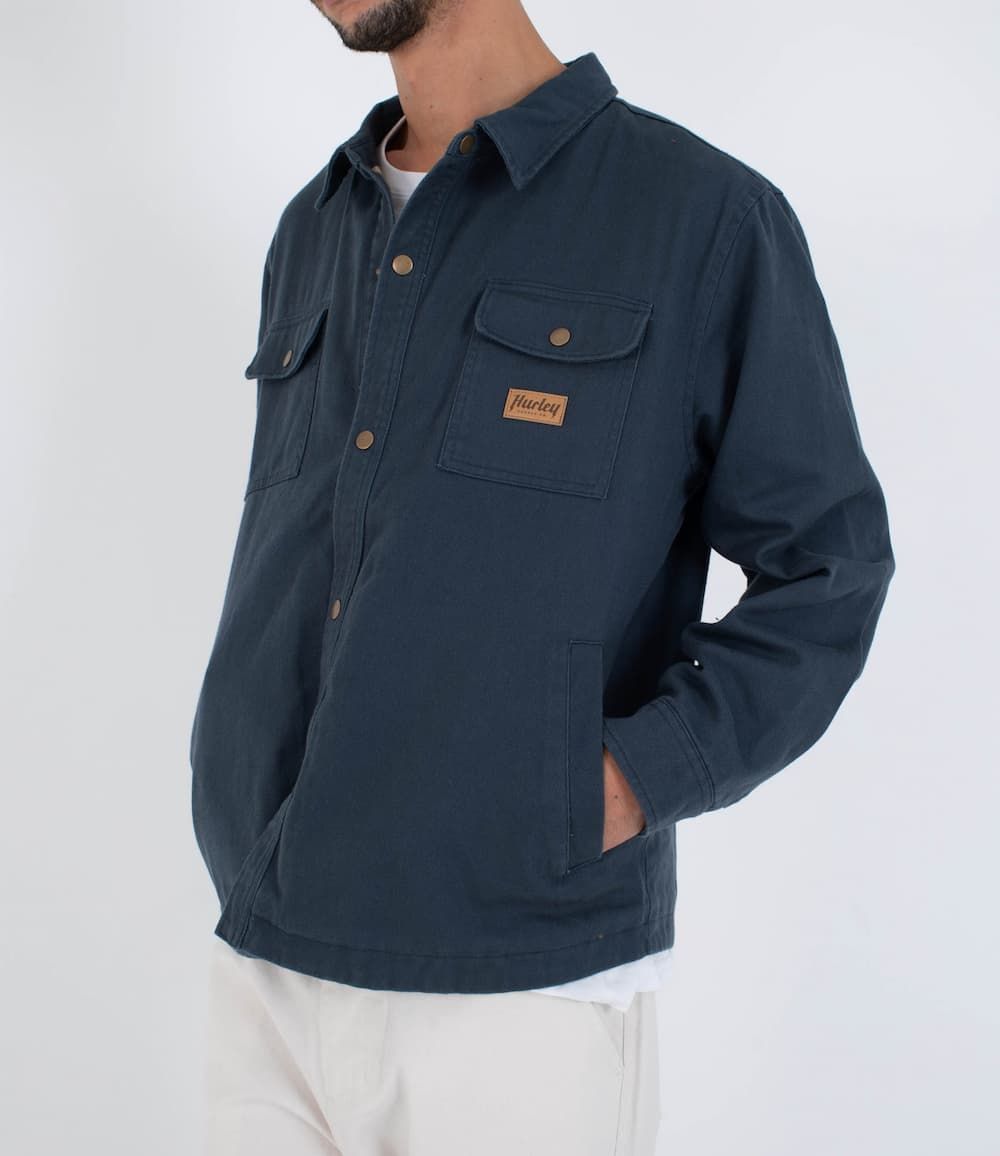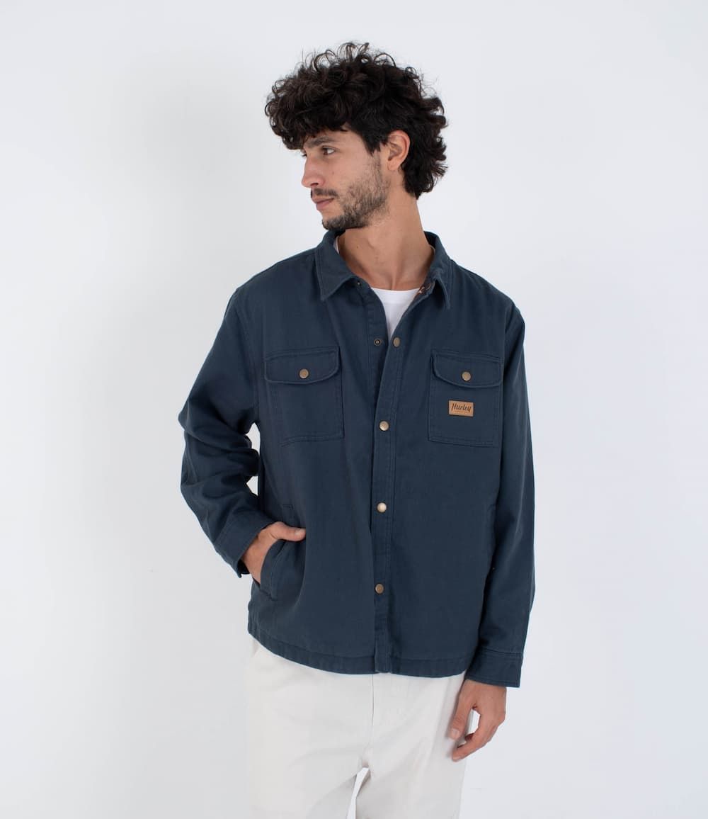 La Hurley Trade Jacket está pensada para quienes buscan una chaqueta de invierno con presencia, funcional y con ese punto técnico que se siente tanto en la ciudad como en cualquier escapada al aire libre. Su tejido de sarga gruesa 100% algodón, sumado al forro interior de franela, le da cuerpo, calidez y una textura suave que no compromete la libertad de movimiento. Es la clásica sobrecamisa con actitud de chaqueta, lista para acompañarte en días fríos sin perder la estética street de Hurley.
