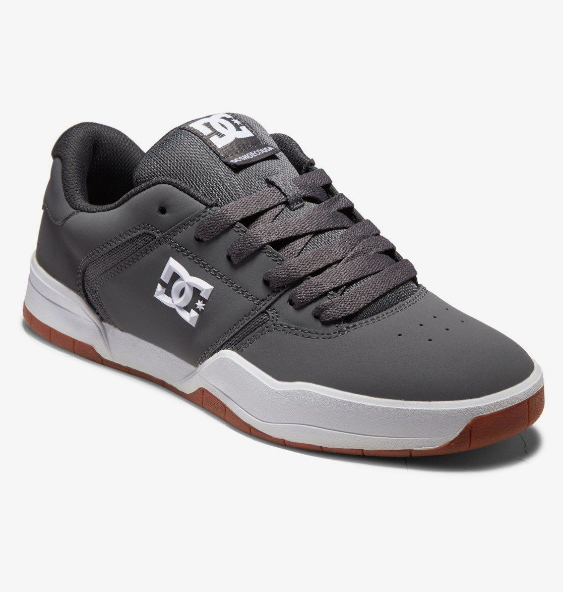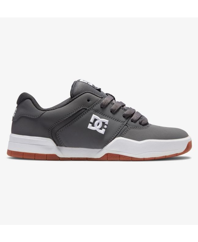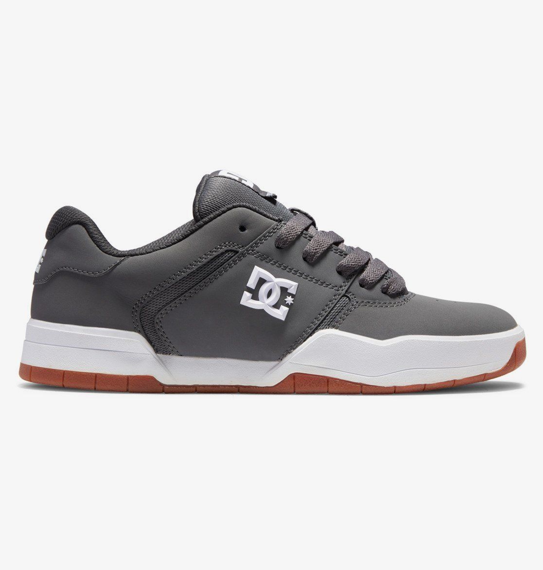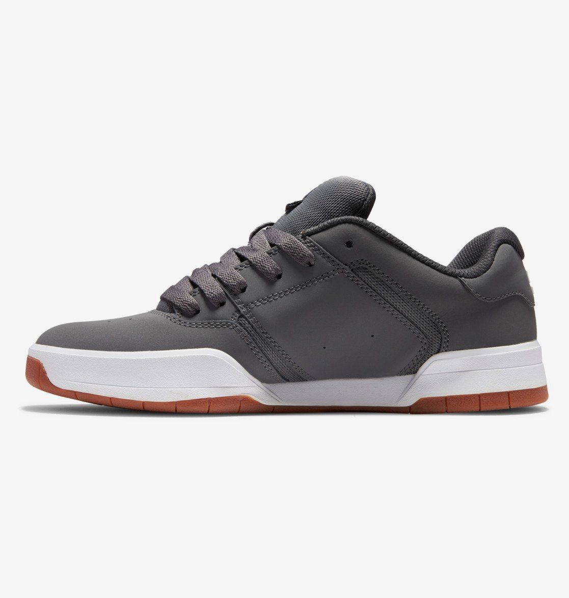 Las zapatillas para hombre Central de DC Shoes en color gris con la suela blanca están confeccionadas con la parte superior con múltiples paneles de cuero y tejido interior de malla, para mayor confort.