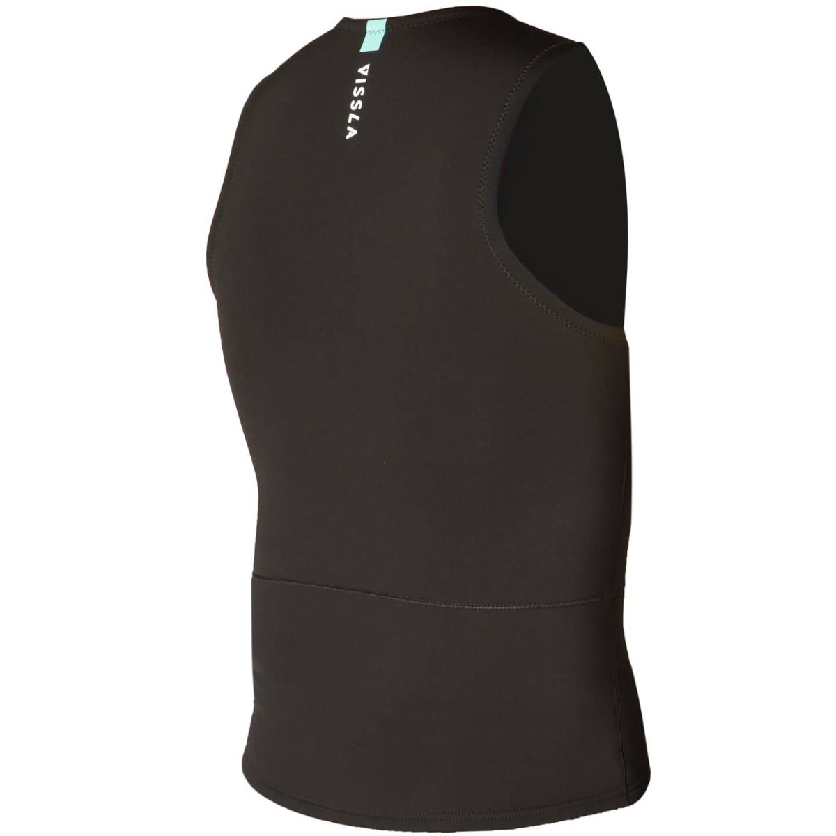 El chaleco de neopreno Seven Seas 2mm Front Zip Negro para hombre tiene el logo de Vissla estampado en el pecho y la espalda.