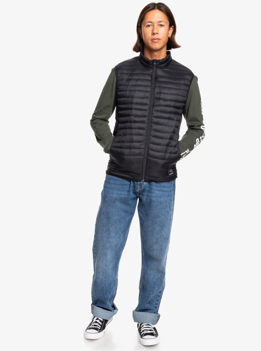 El chaleco acolchado ligero Scaly Negro para hombre tiene el sello de garantía Quiksilver.