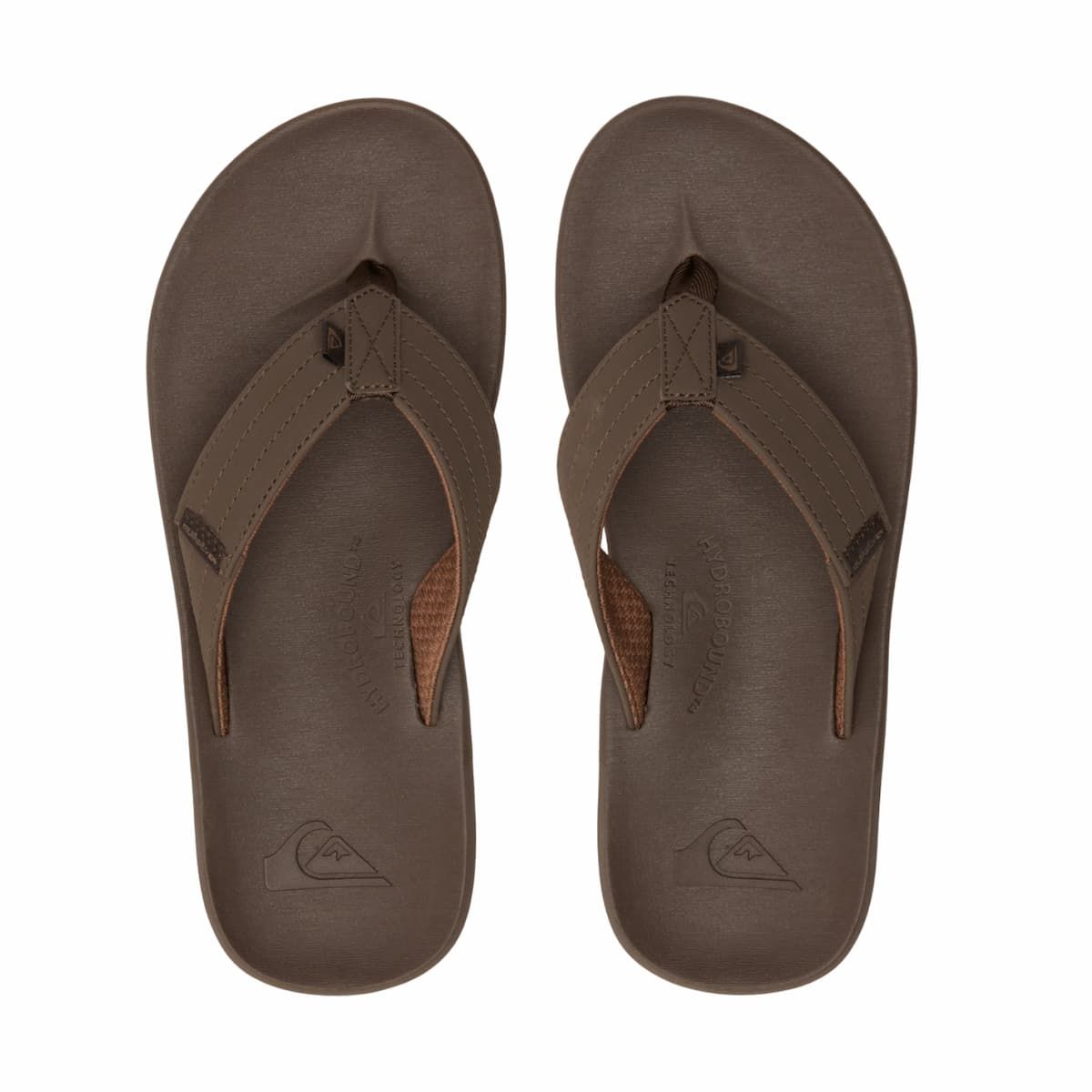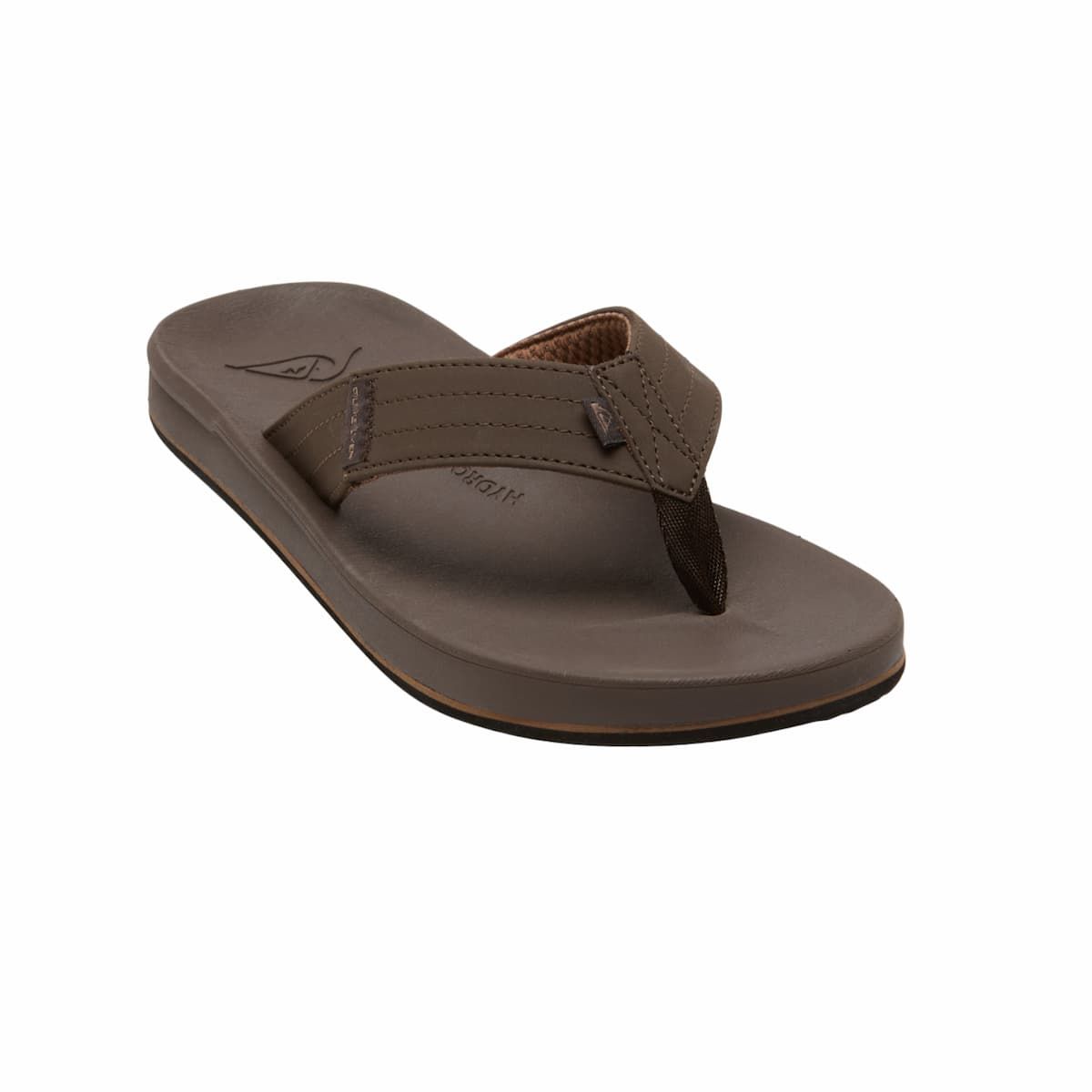 Estas sandalias playeras de dedo cuentan con parte superior de piel sintética vegana impermeable, plantilla Hydrobound™ blanda con perfil anatómicamente correcto para mayor comodidad, forro texturizado transpirable, suela exterior de goma anti-deslizante con muescas multi-ángulo con el logo de Quiksilver para mayor tracción, el logo de de la ola y la montaña grabado en la plantilla, junto con una etiqueta de la marca tejida en la correa.
