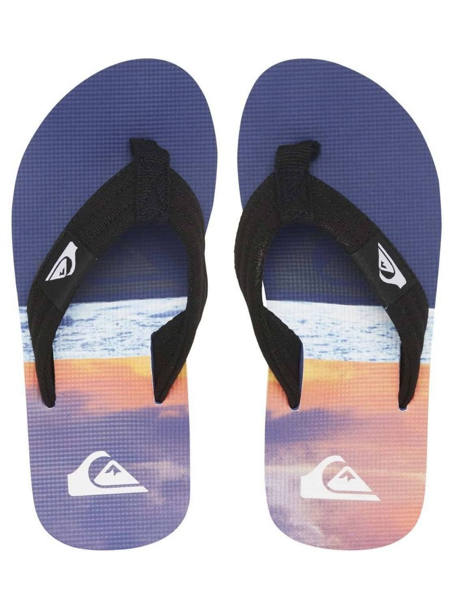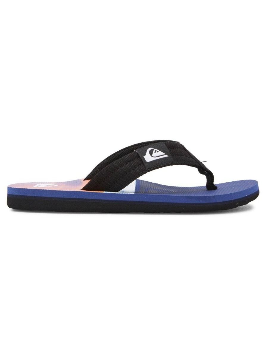 Las chanclas para chico Molokai Layback de Quiksilver en color azul marino, azul y naranja (Blue/Blue/Orange) han sido confeccionadas con la parte superior en lona de algodón y forro de suave de poliéster resistente al agua para mayor comodidad.