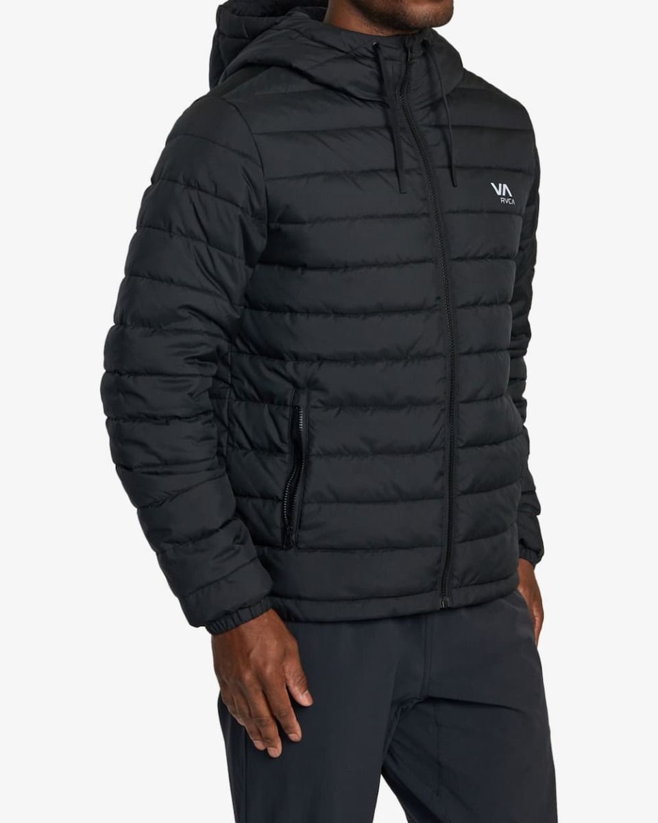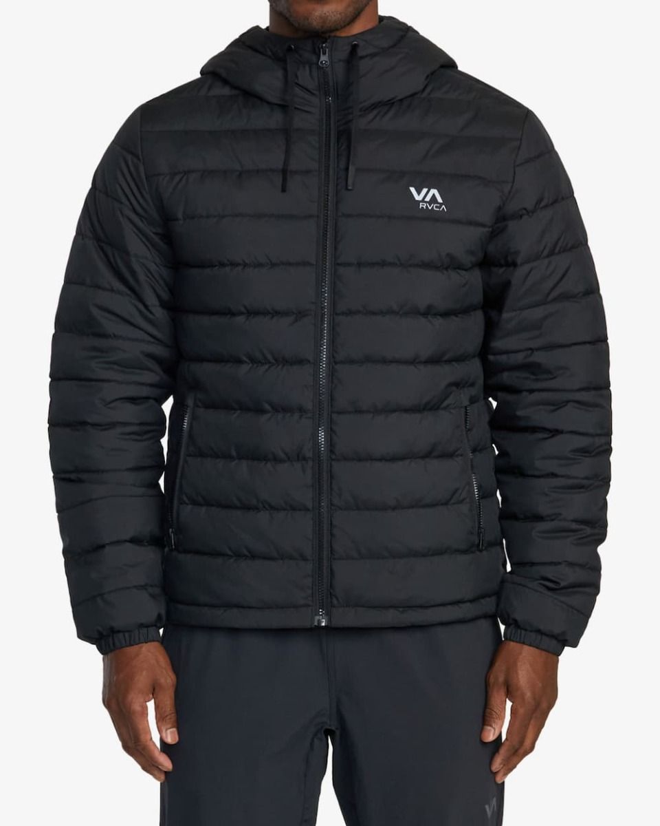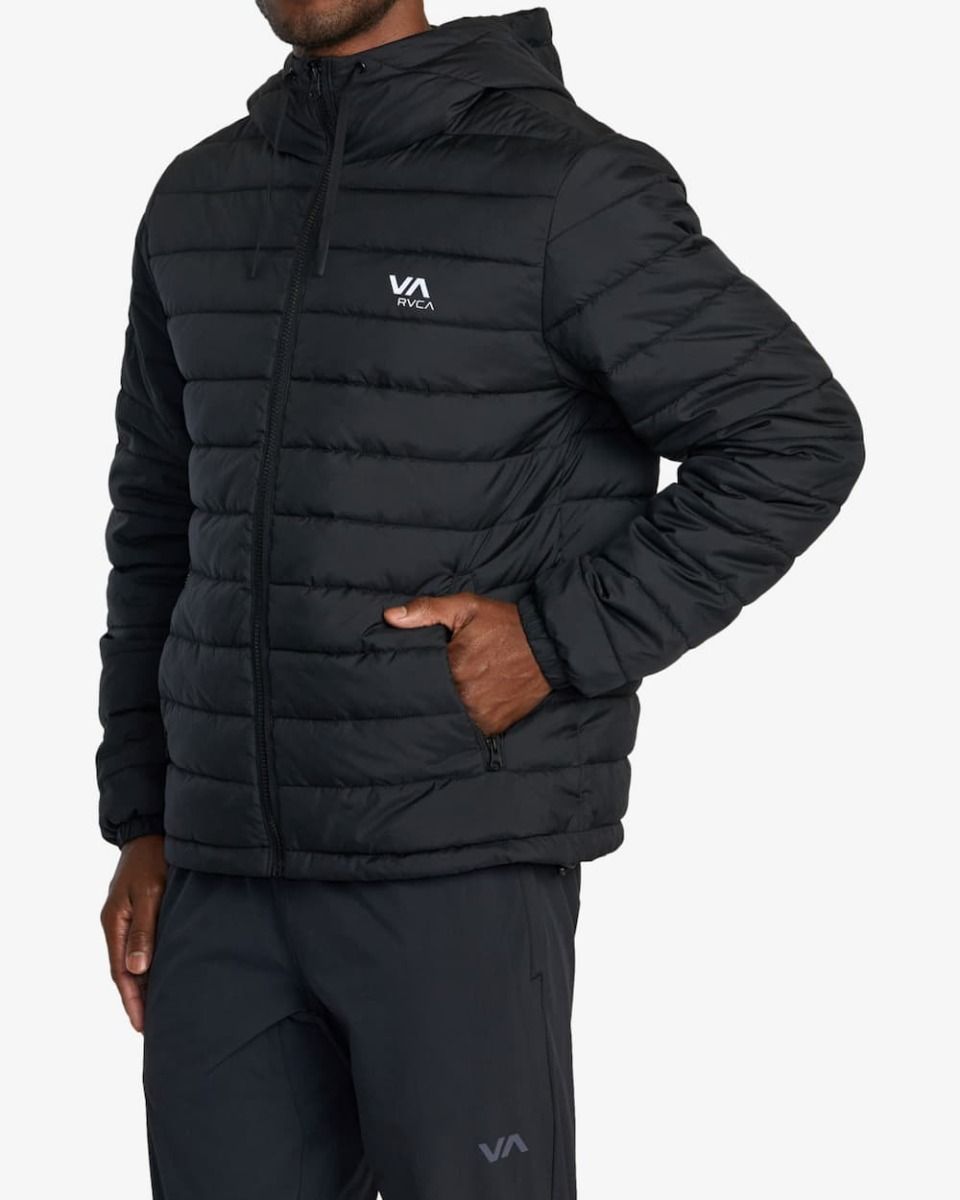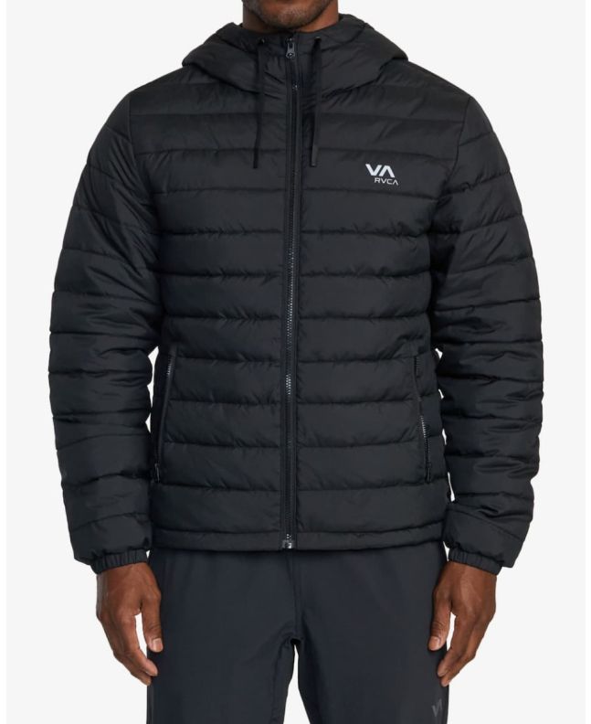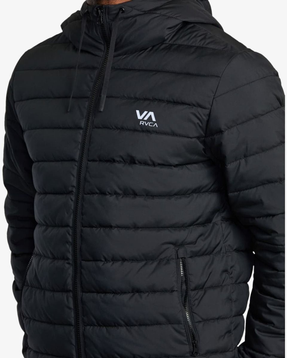 La chaqueta acolchada e impermeable Packable Puffa Negra para hombre tiene el sello de garantía RVCA VA Sport.