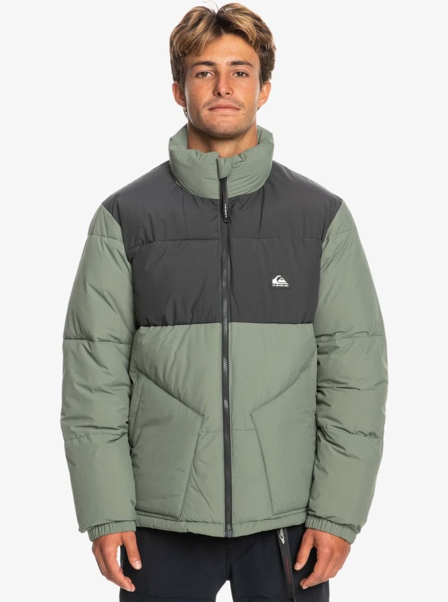 La chaqueta acolchada técnica Wild Mountain Verde para hombre tiene el sello de garantía Quiksilver.