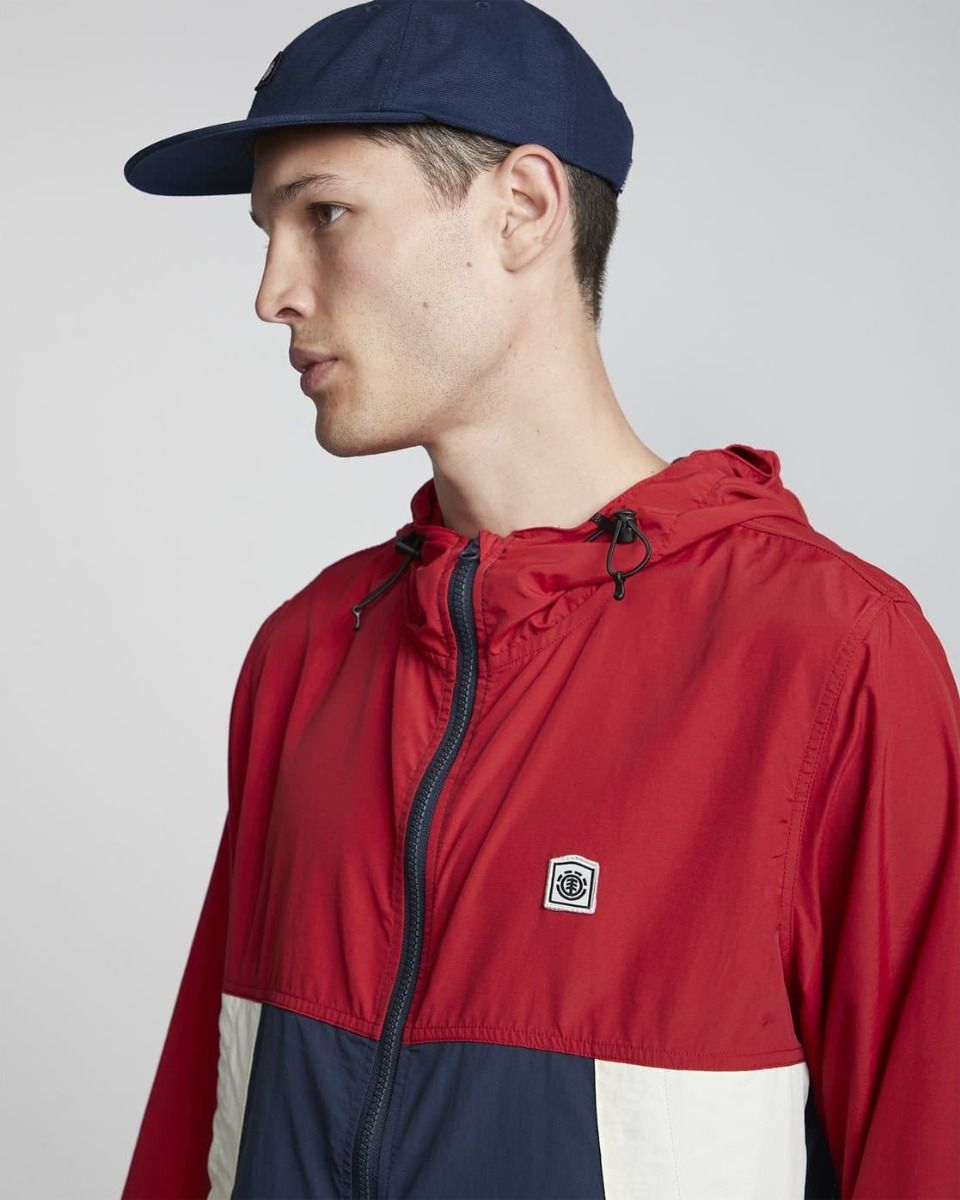 Esta chaqueta ligera, perteneciente a la colección Wolfeboro de Element, cuenta con tela de nailon Taslon con acabado resistente al agua DWR, capucha con visera y cordón ajustable, puños elásticos, dobladillo inferior ajustable, cierre frontal de cremallera Vislon, pieza posterior del canesú y bolsillos laterales forrados de malla, un parche de Wolfeboro cosido en el pecho y una etiqueta con el logo del árbol de Element tejida en la capucha.
