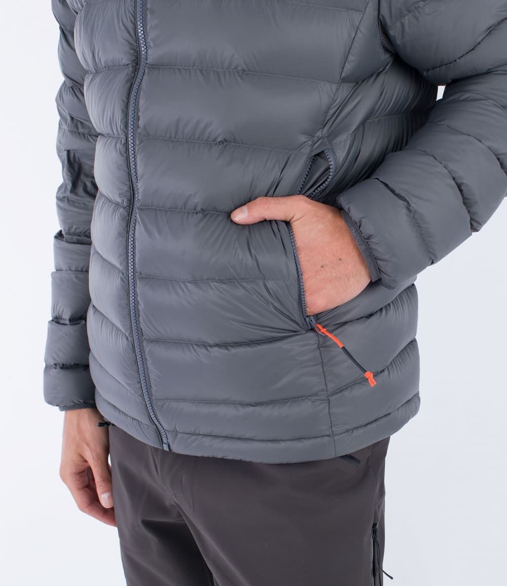 Gracias a su relleno térmico con 600 Fill Power, esta chaqueta de invierno te ofrece una excelente relación peso-abrigo. Su tejido exterior 100% nailon con tratamiento DWR libre de PFC's repele la humedad y protege del viento sin perder transpirabilidad. El contraste interior en naranja vivo no solo aporta personalidad, sino también mayor visibilidad en exteriores.