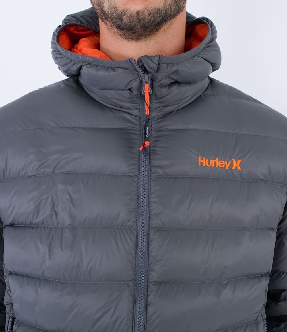 Chaqueta impermeable con capucha Hurley Cayuga Puffer en color gris oscuro para hombre