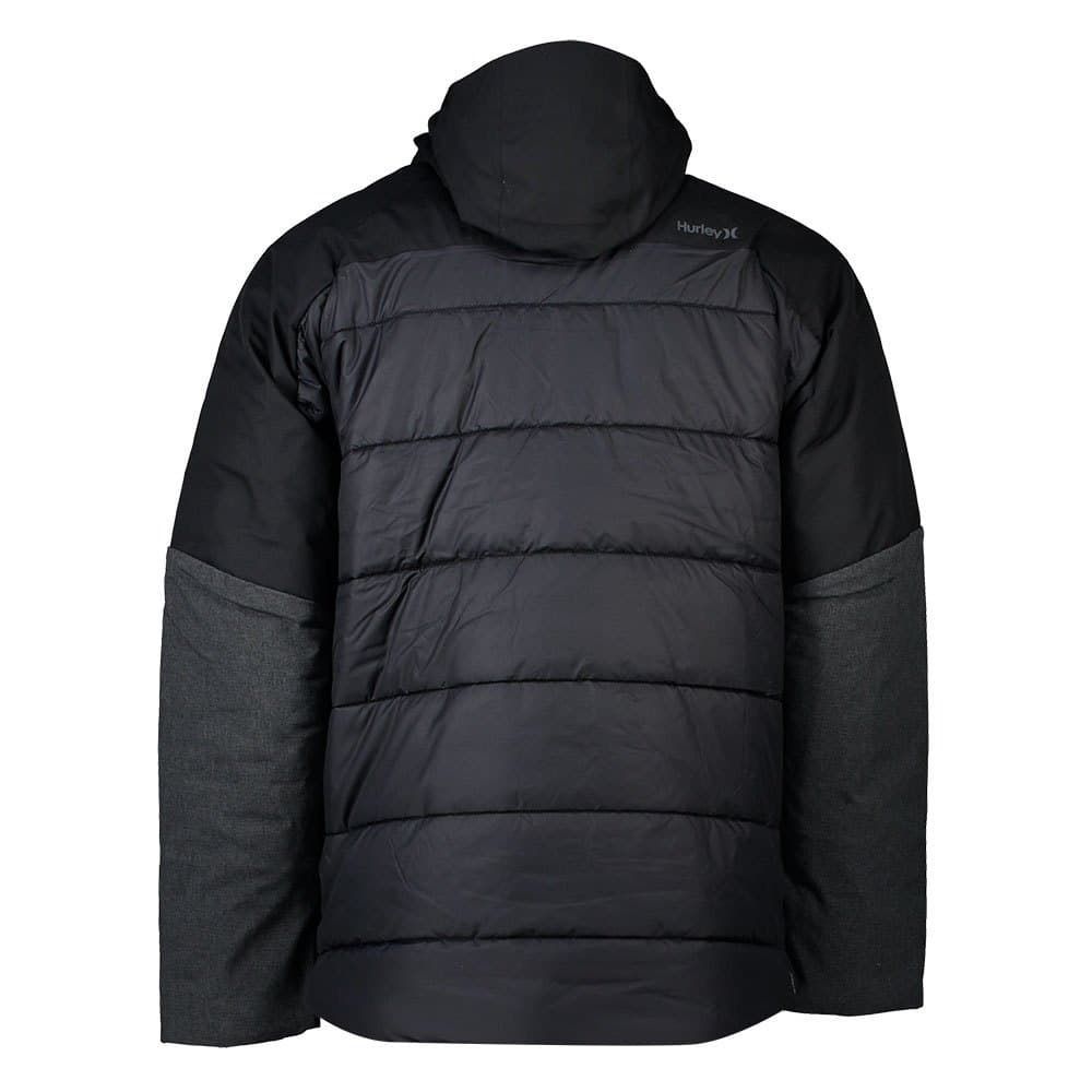 La chaqueta acolchada para hombre Knight Defender Jacket en negro (Black) de Hurley está confeccionada con tecnología Primaloft, paneles resistentes al agua 10K para lluvia intensa y tejido resistente al agua 5k y al viento.