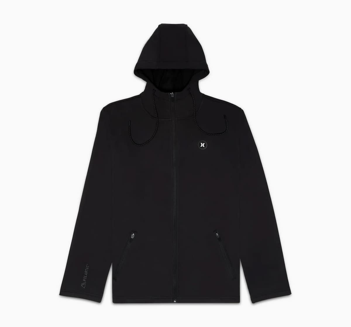 La chaqueta impermeable y cortavientos Phantom Alpha Polartec también presenta capucha ajustable, cierre frontal de cremallera, cuello alto, dos bolsillos delanteros de cremallera, junto con un parche del logo de Hurley en el lado izquierdo del pecho.
